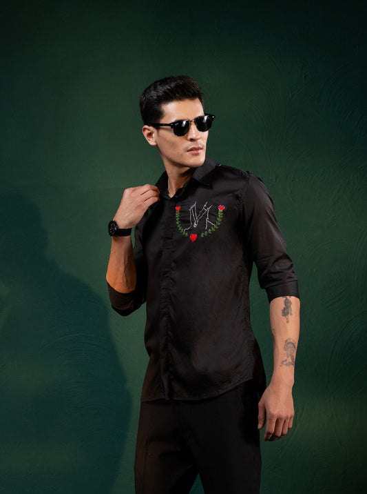"GIRL AND A BOY HOLDING HAND" EMBROIDERED ON A SHIRT