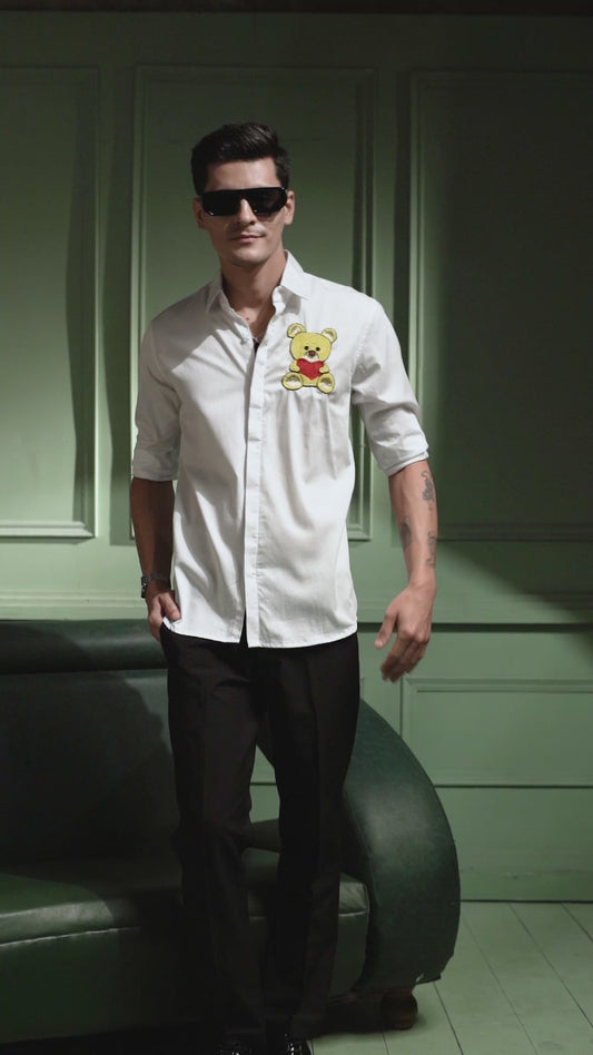 "TEDDY BEAR" EMBROIDERED ON A WHITE SHIRT
