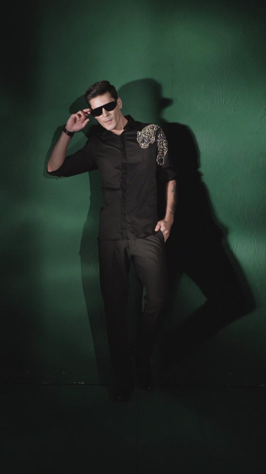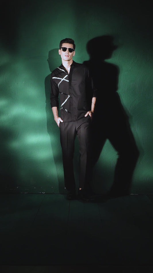 "LINE PATTERN" EMBROIDERED ON A BLACK SHIRT