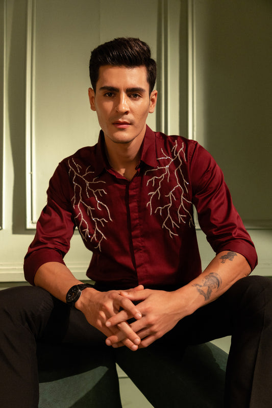 "HAND EMBROIDERY MODERN TEXTURED DESIGN IN MAROON"