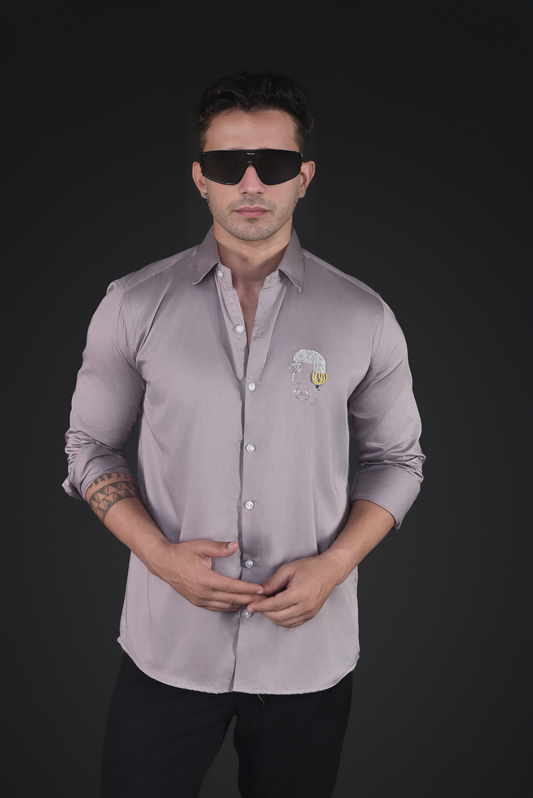 "KING OF SPADES" EMBROIDERED ON A GRAY SHIRT
