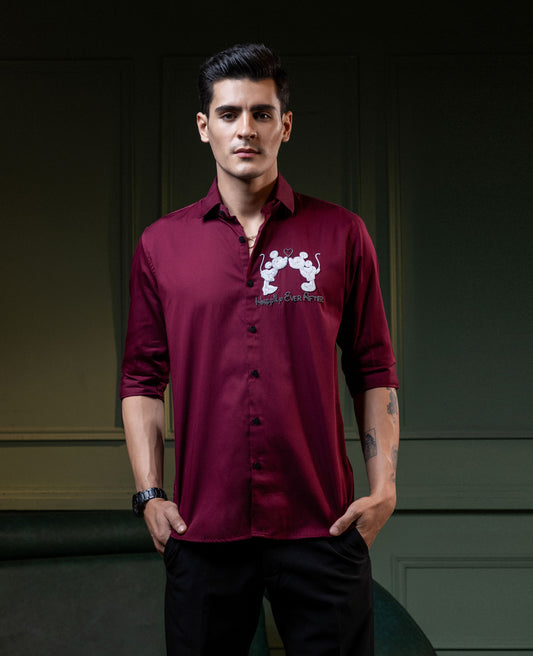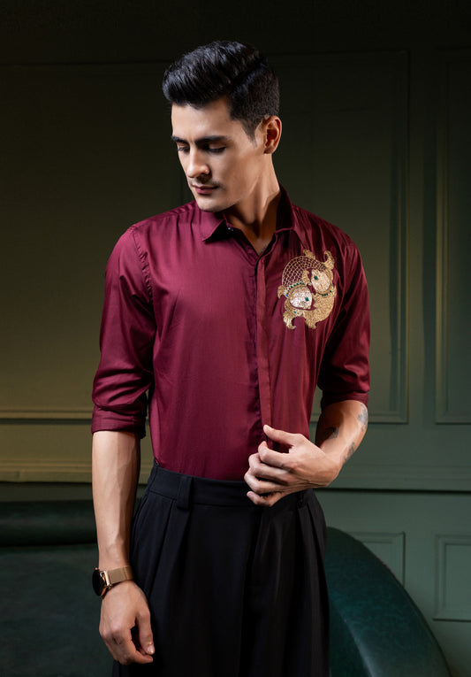 "HAND MADE EMBROIDERY SHIRT WITH HONEY BEE DESIGN IN MAROON"