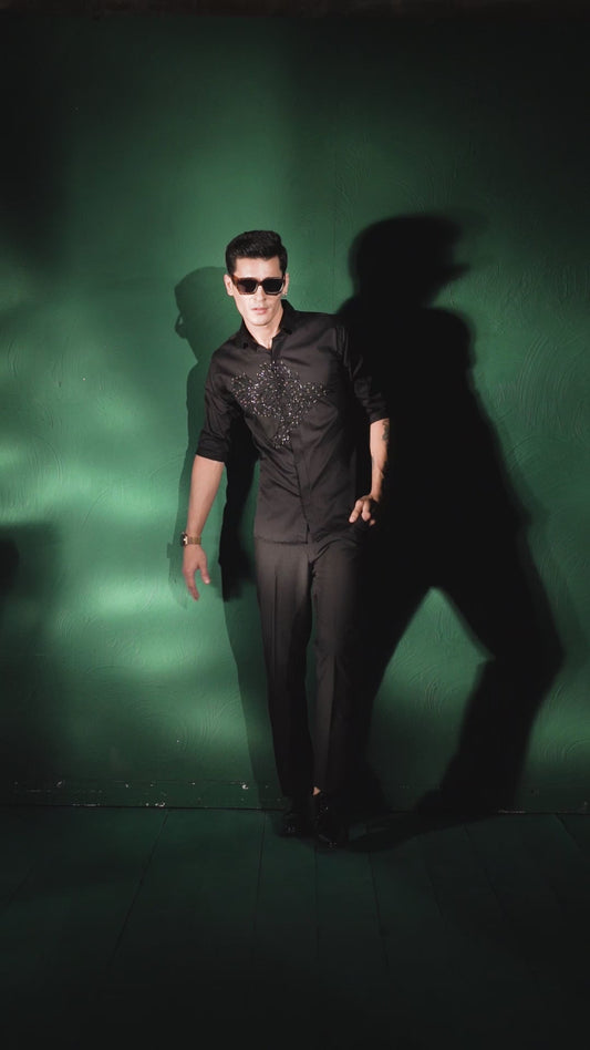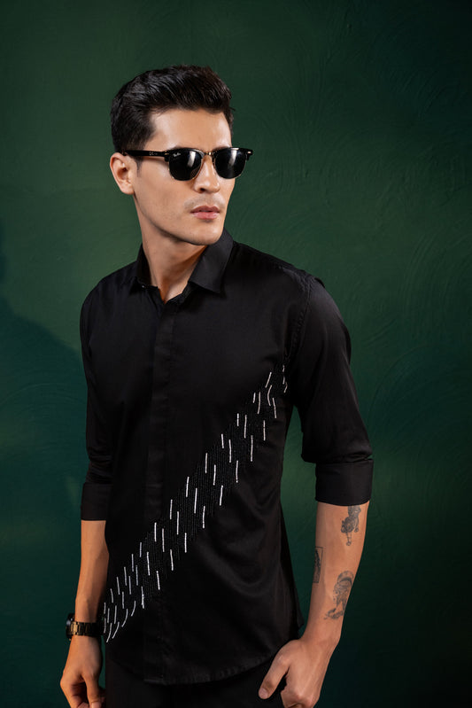 "FLOWER PETALS" EMBROIDERED ON BLACK FULL SLEEVES SHIRT