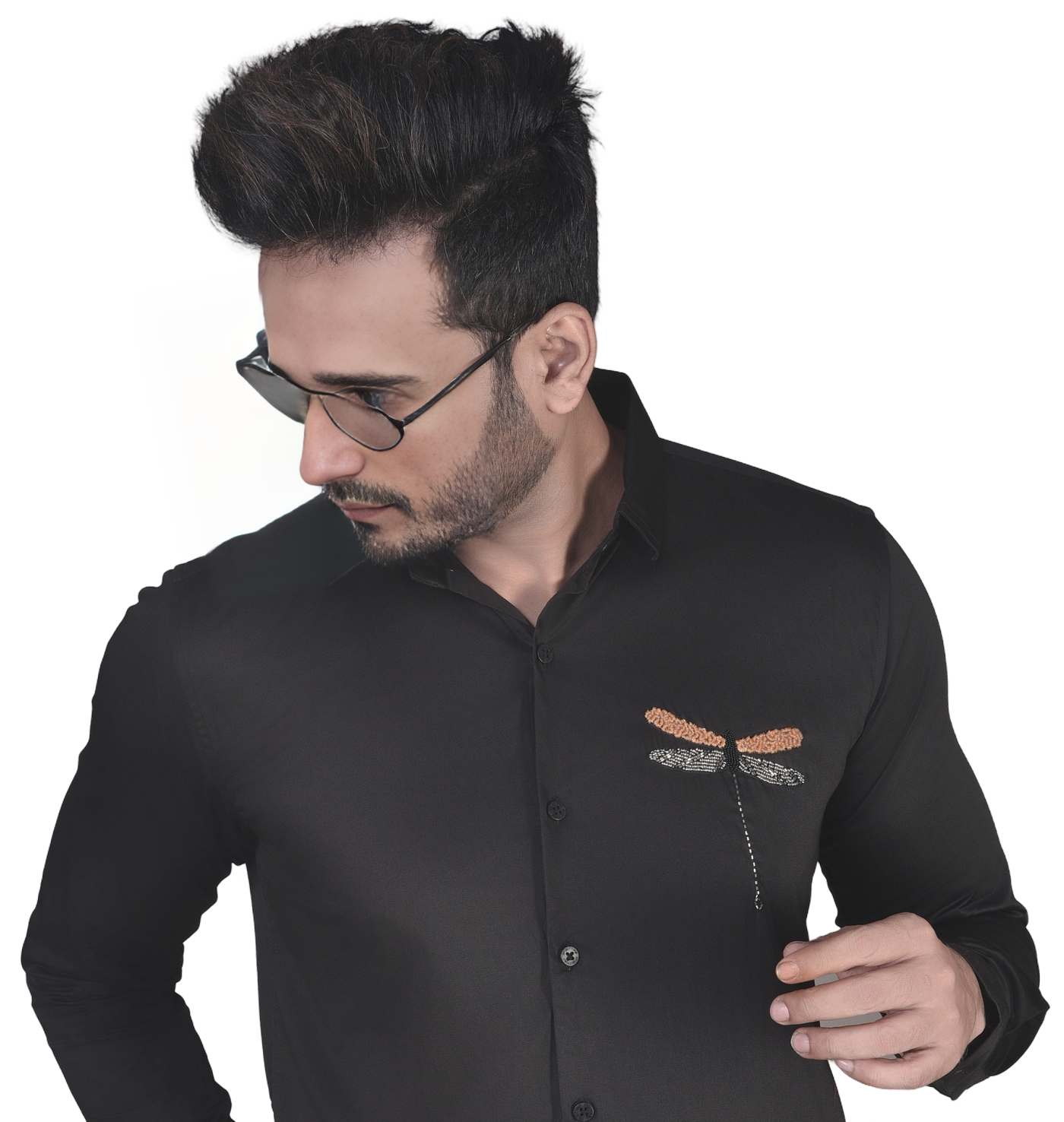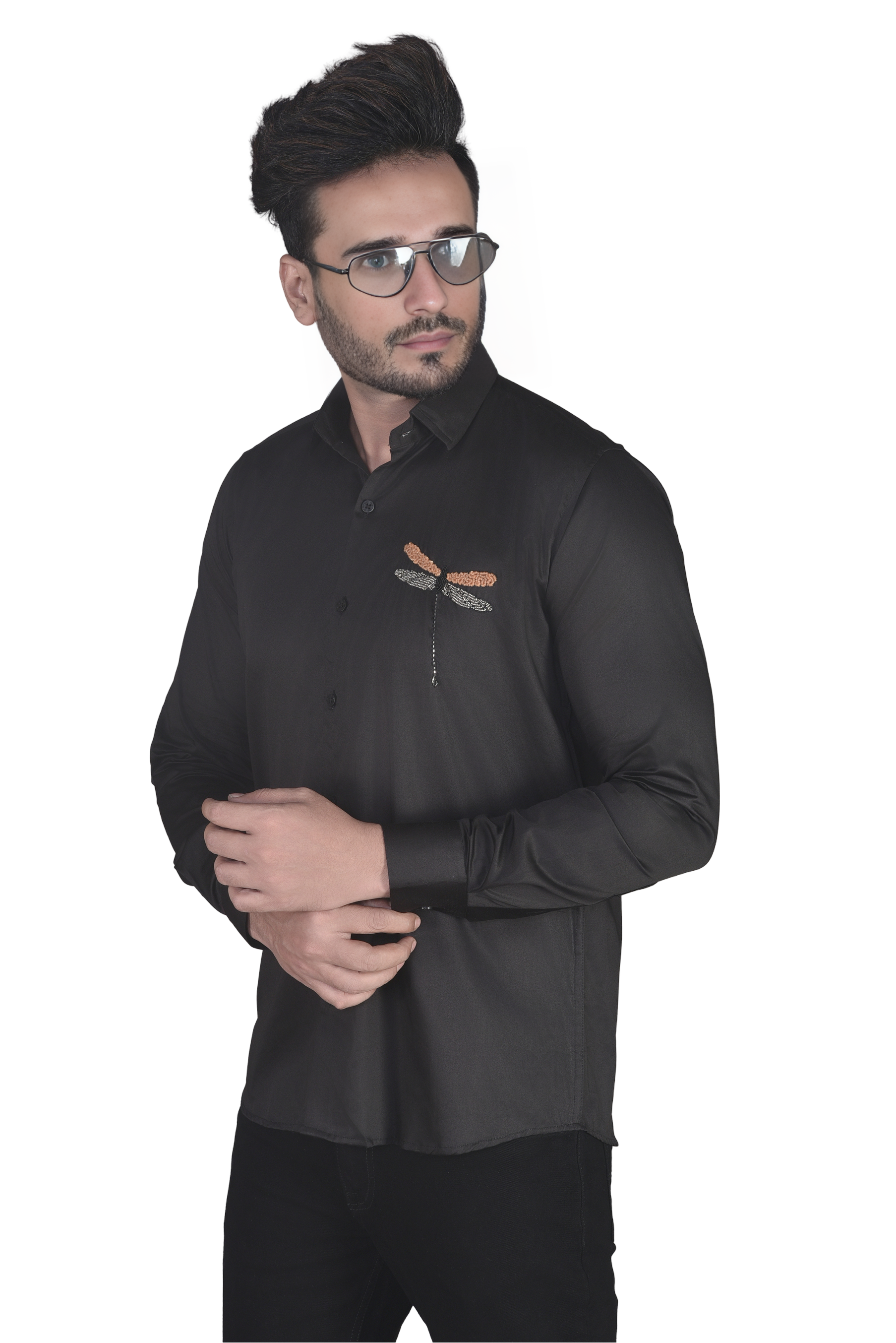 A shirt with a beautifully hand-embroidered dragonfly adds a unique and artistic flair, showcasing the intricate details of this graceful insect. The delicate stitching captures the dragonfly’s shimmering wings and intricate patterns, creating a visually striking design that symbolizes transformation and adaptability. Perfect for nature enthusiasts, this shirt can be paired with various outfits, offering a charming, whimsical touch to casual ensembles while highlighting the craftsmanship of hand embroidery.