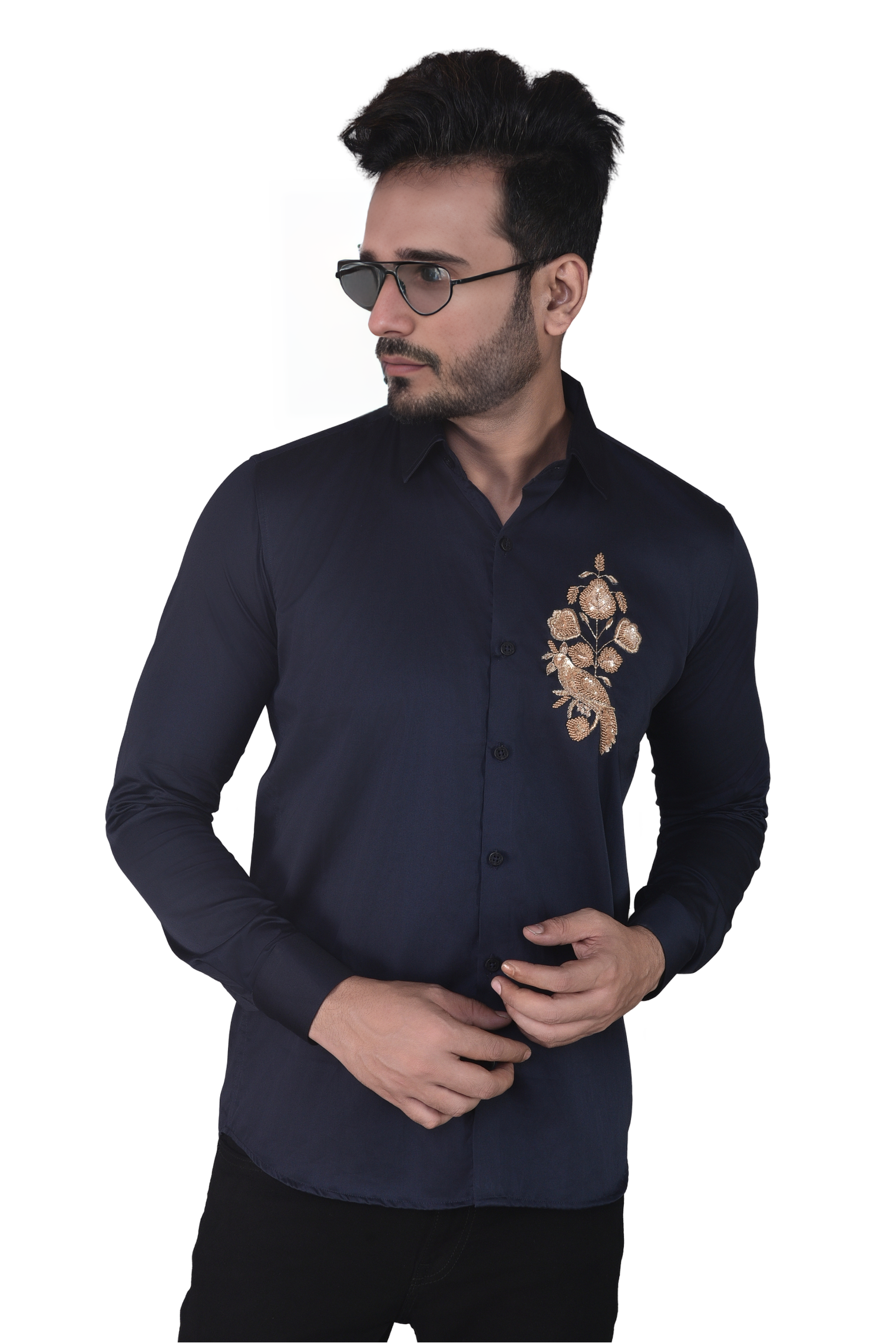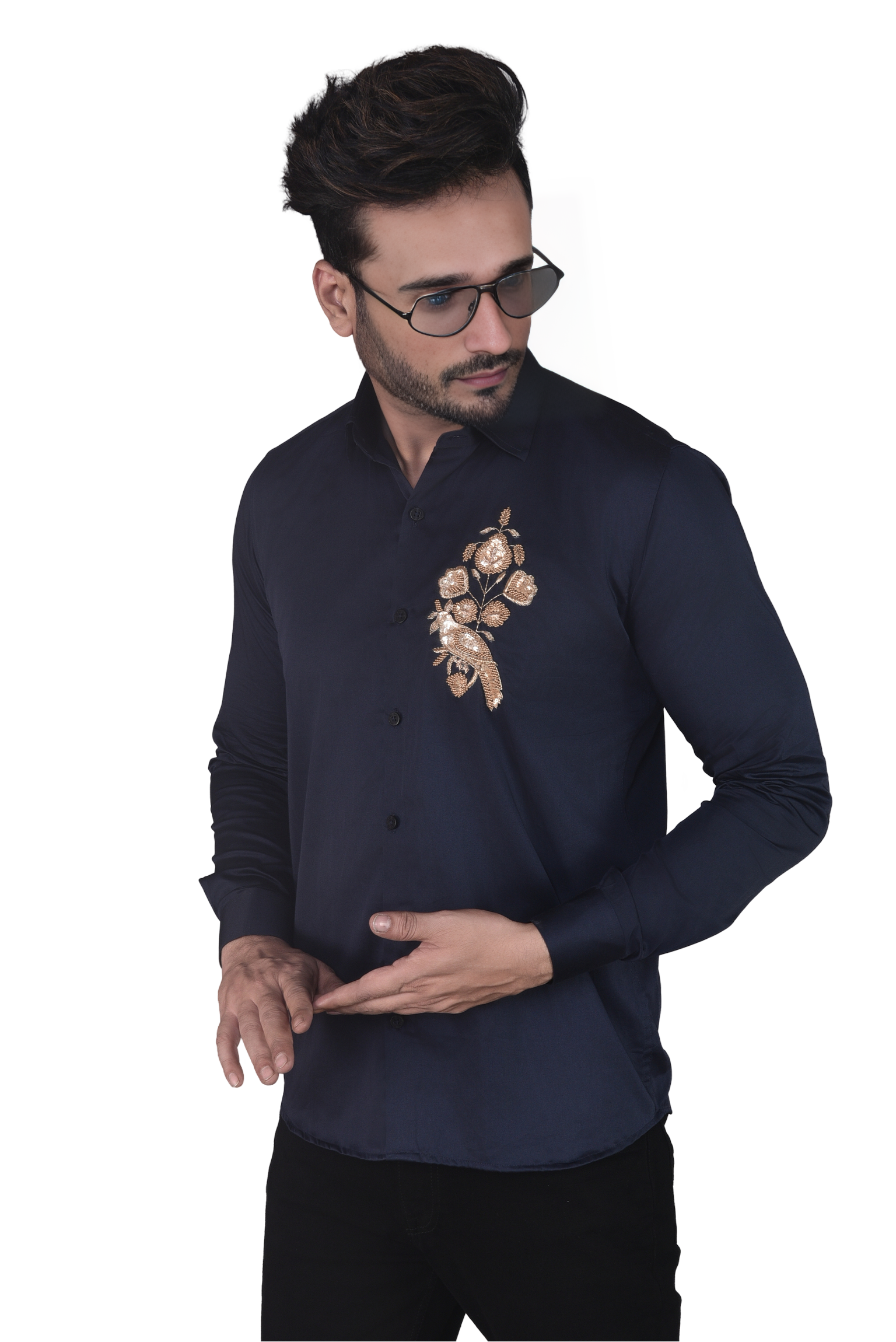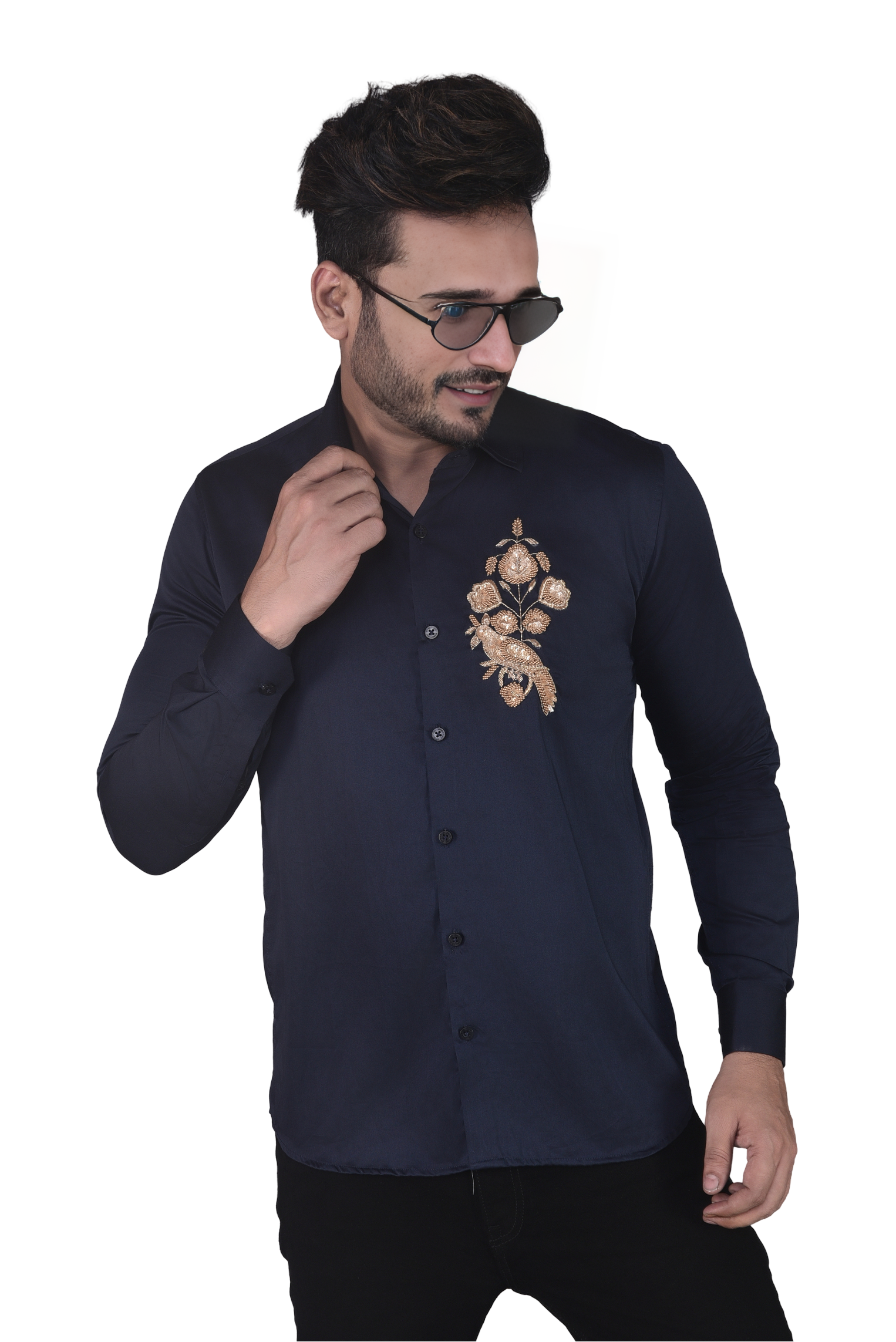 A shirt adorned with a beautifully embroidered bird showcases intricate craftsmanship and vibrant colors that bring the design to life. This elegant motif can symbolize freedom, beauty, and nature, adding a touch of artistic charm to any outfit. Perfect for casual wear or semi-formal occasions, the embroidered bird can serve as a focal point, allowing the wearer to express their individuality and love for nature through fashion.