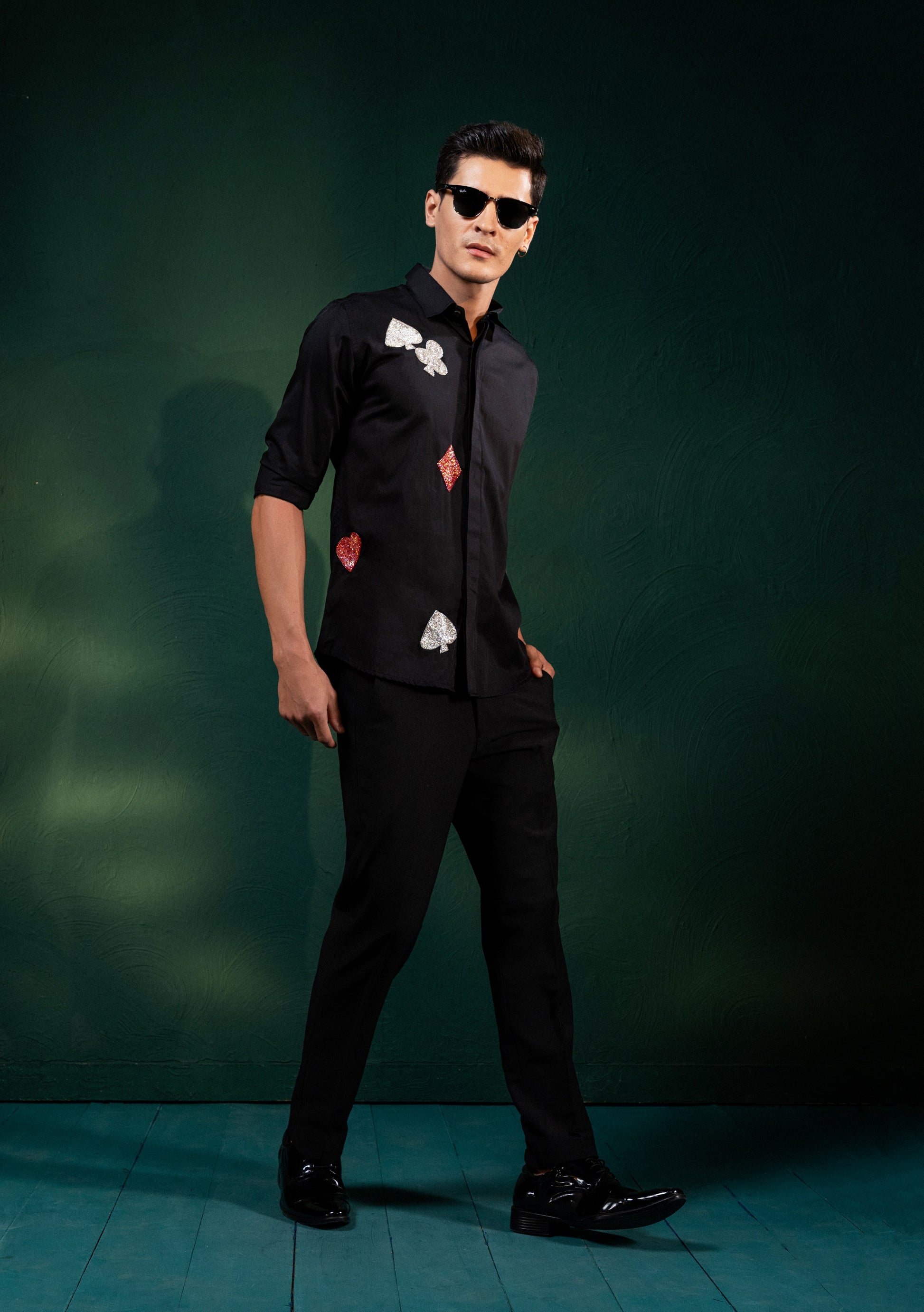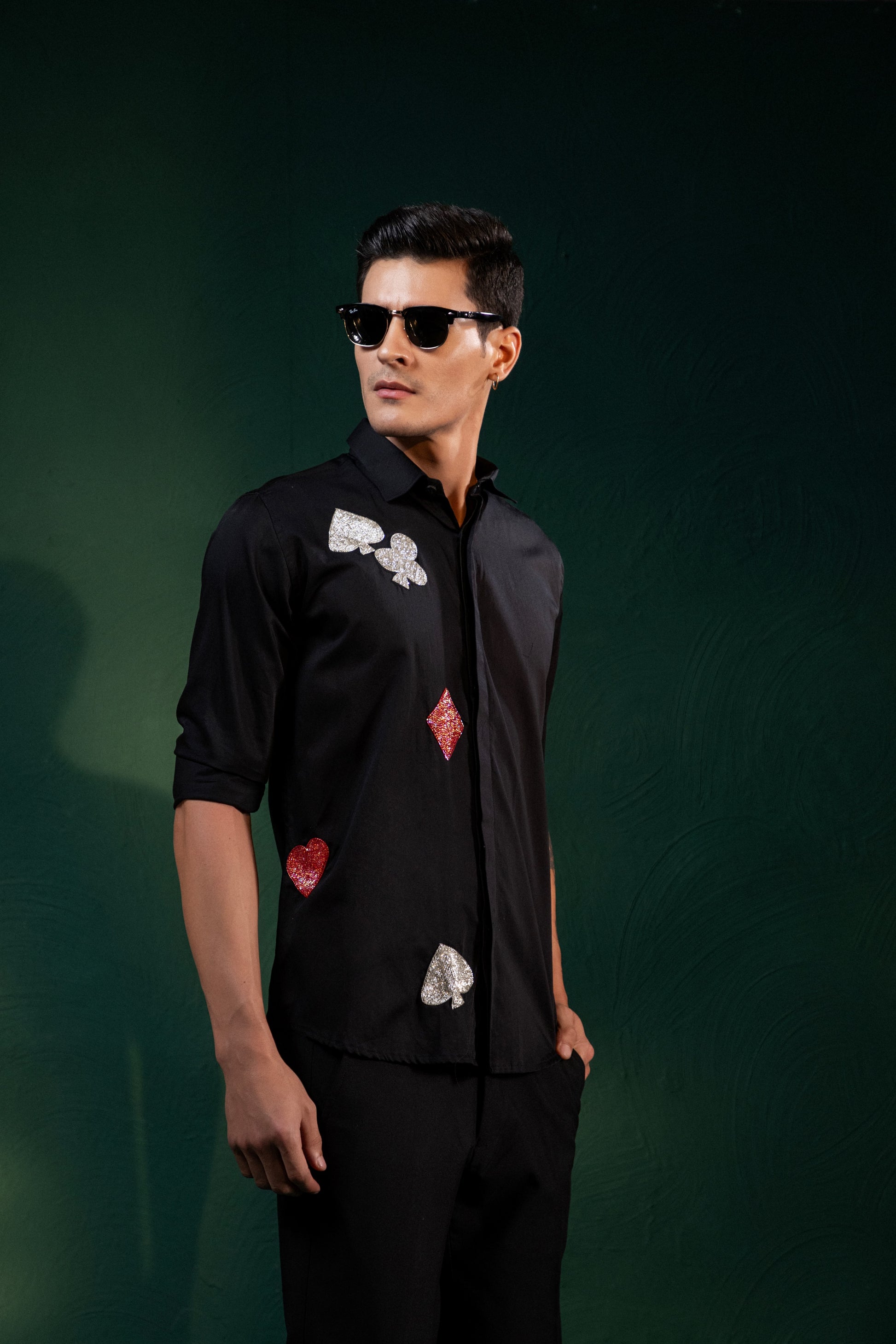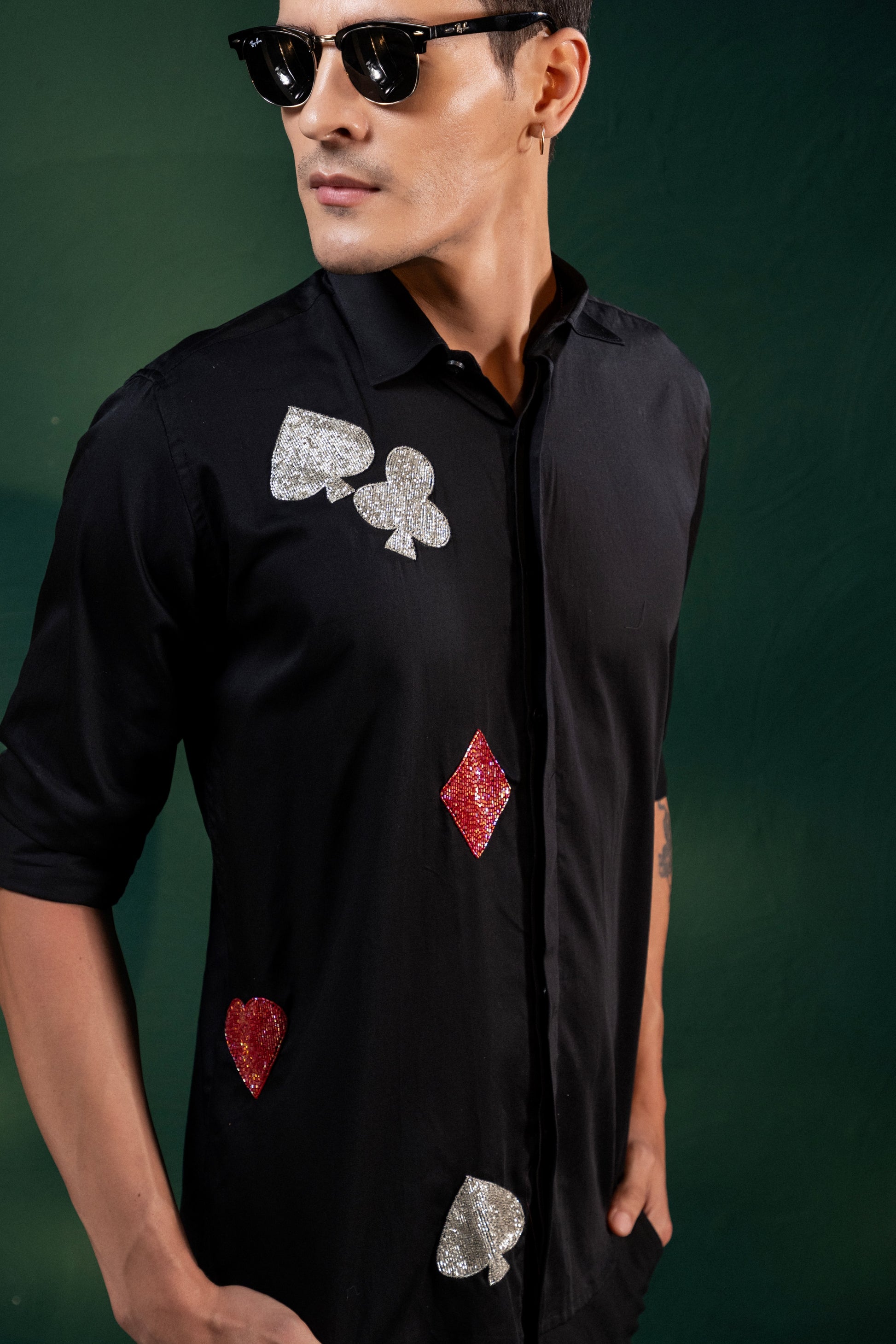 This shirt is perfect for poker night with its embroidered card clubs design. Not only is it stylish, but it also adds a touch of sophistication to your game. The high-quality embroidery ensures long-lasting wear, making it a wise investment for any poker enthusiast.