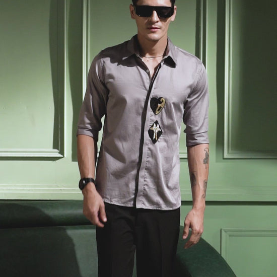 This shirt boasts a unique and elegant design of a heart and diamond embroidered on the front. The intricate embroidery adds a touch of sophistication and style to any outfit. Made with high-quality materials, this shirt is perfect for any formal or casual occasion.