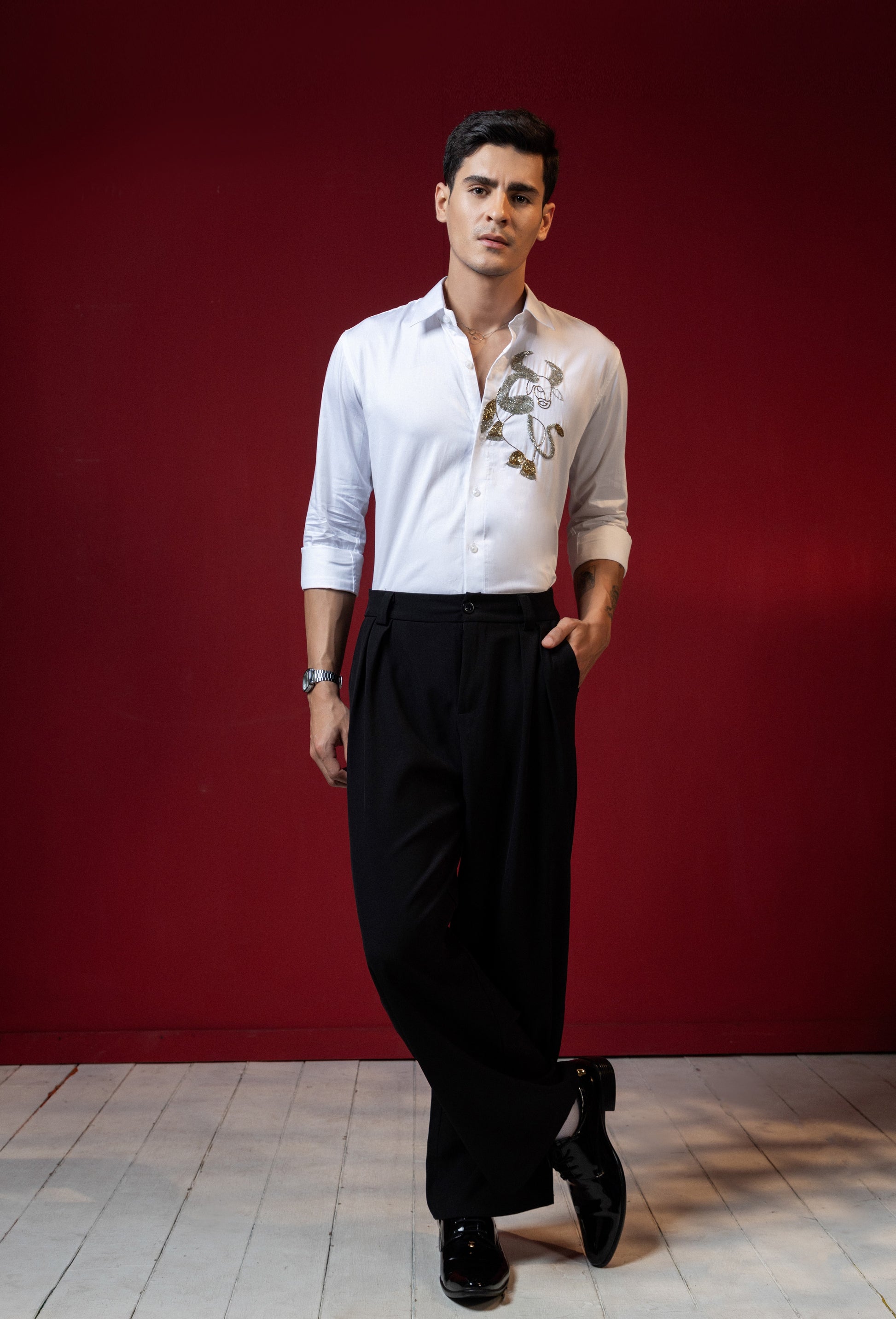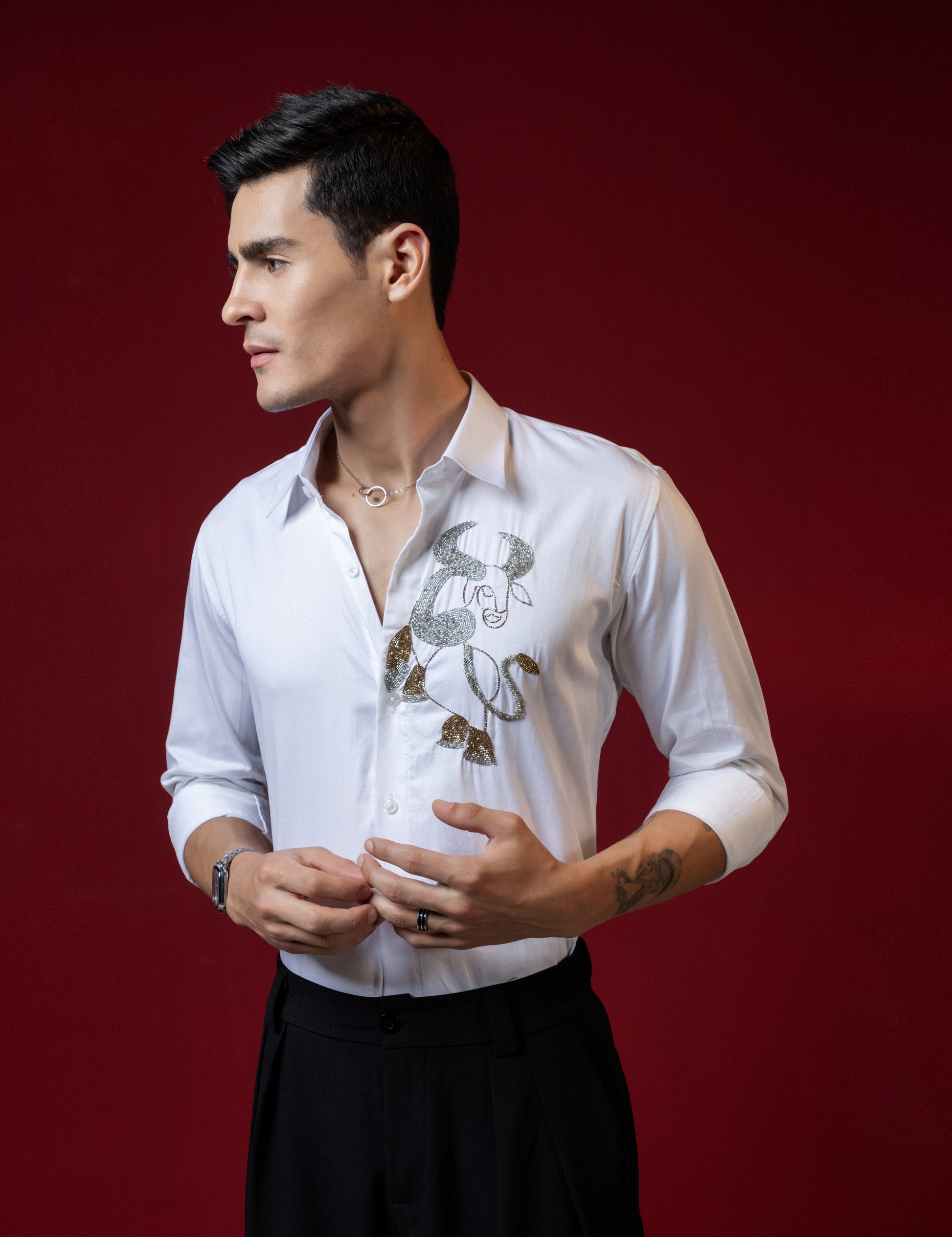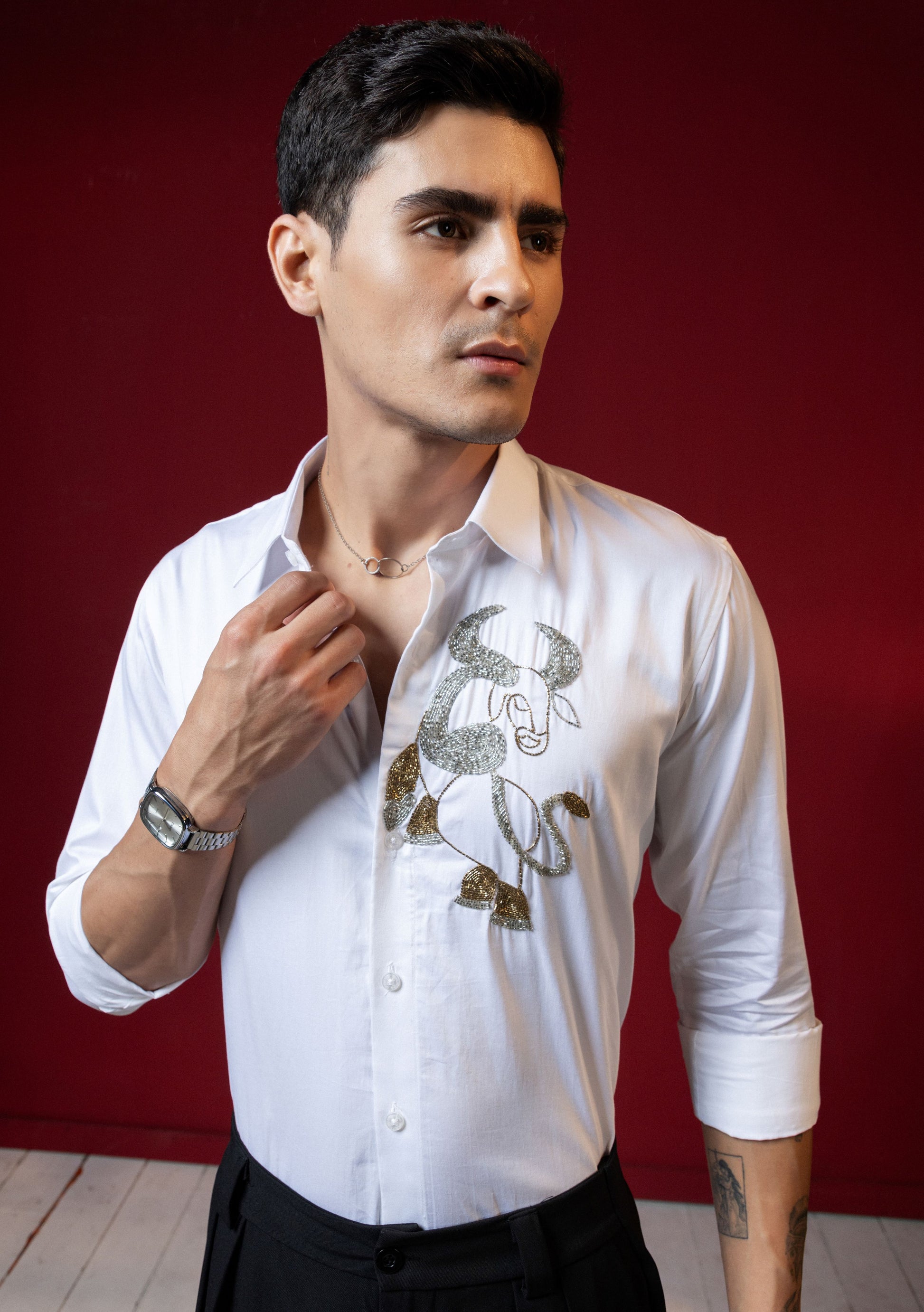 Expertly crafted with precision, this shirt features a striking embroidered big bull design that adds a touch of boldness to your outfit. Made with high-quality materials, it offers both durability and style. Elevate your wardrobe with this unique and eye-catching piece.