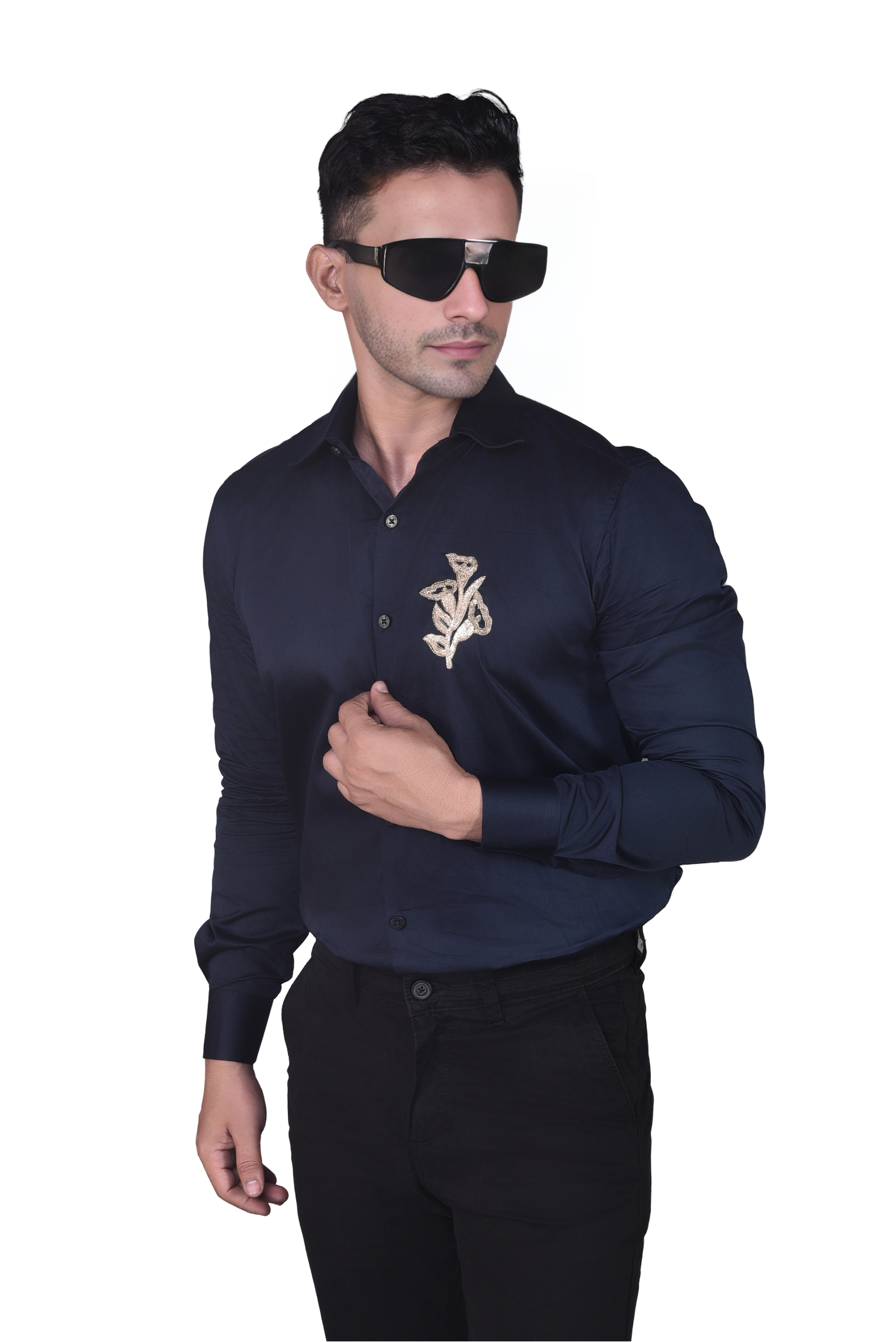 A shirt with a flower embroidered on it adds a charming and natural element to the garment, making it a lovely choice for casual or semi-formal wear. The intricately stitched flower design can bring a pop of color and texture, enhancing the shirt's overall aesthetic. Whether it's a single bloom or a clustered arrangement, this embroidery lends an artistic touch that celebrates the beauty of nature while allowing for personal expression in your wardrobe.