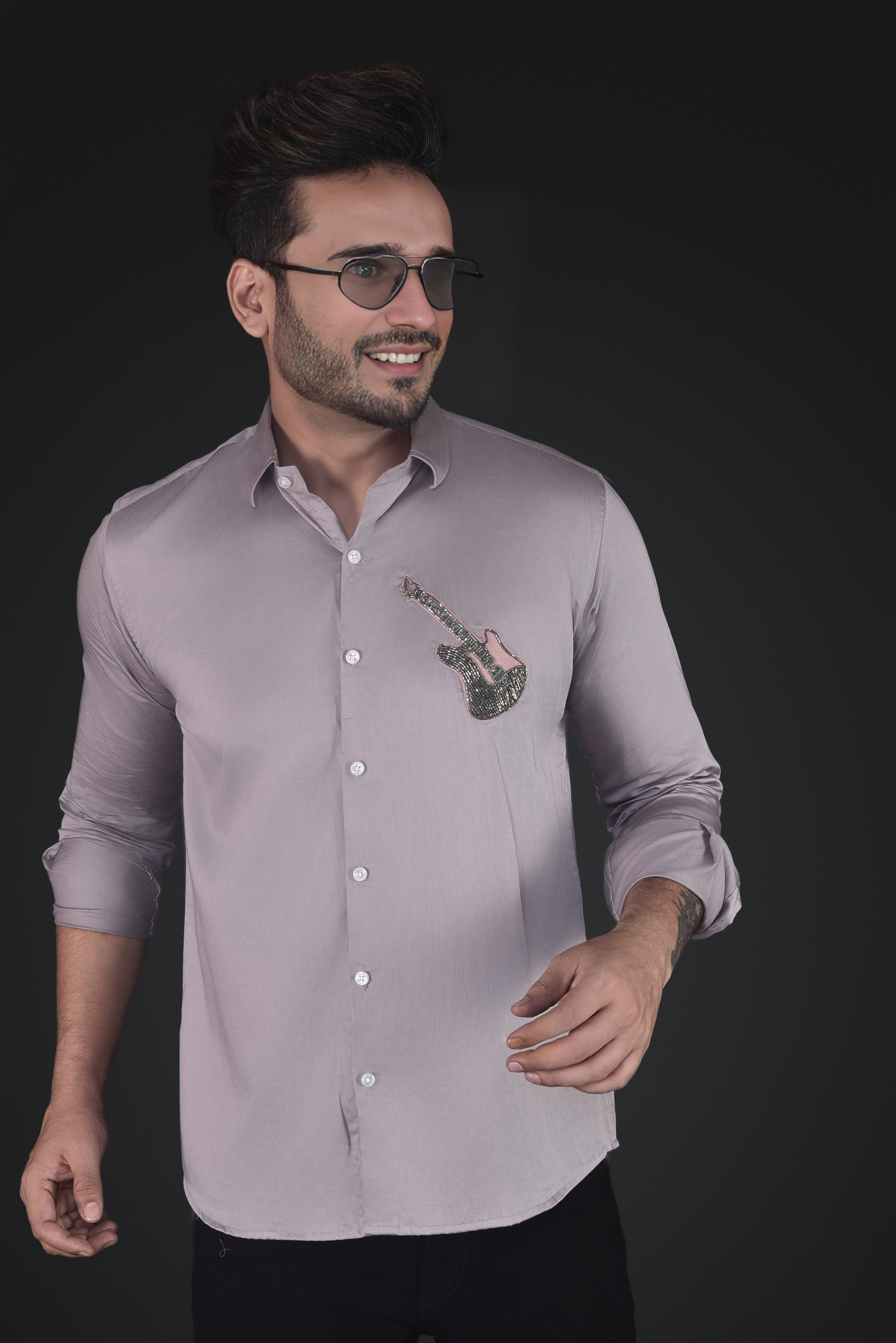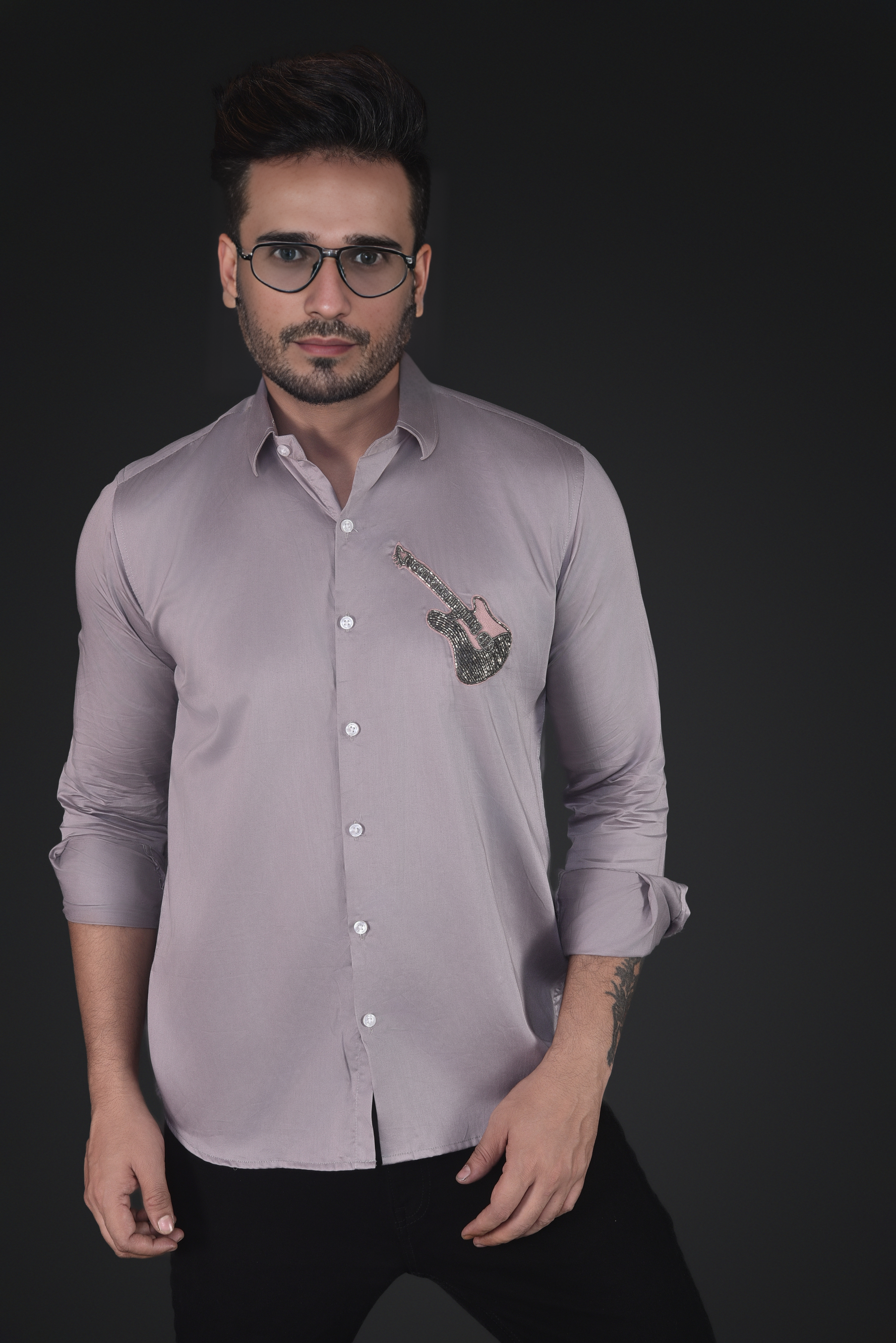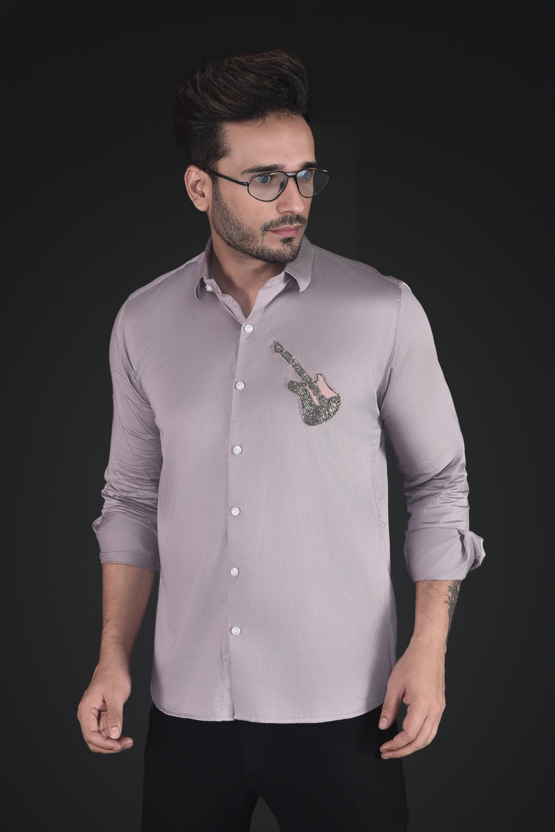 A guitar embroidered on a shirt is a stylish expression of passion for music and creativity. This artistic detail can appeal to musicians, music lovers, or anyone who finds joy in the rhythm of life. The design can range from intricate and detailed to simple and minimalist, allowing for personal style preferences. Wearing a shirt with a guitar motif not only makes a bold fashion statement but also serves as a conversation starter, inviting fellow music enthusiasts to connect and share their favorite tunes and experiences.