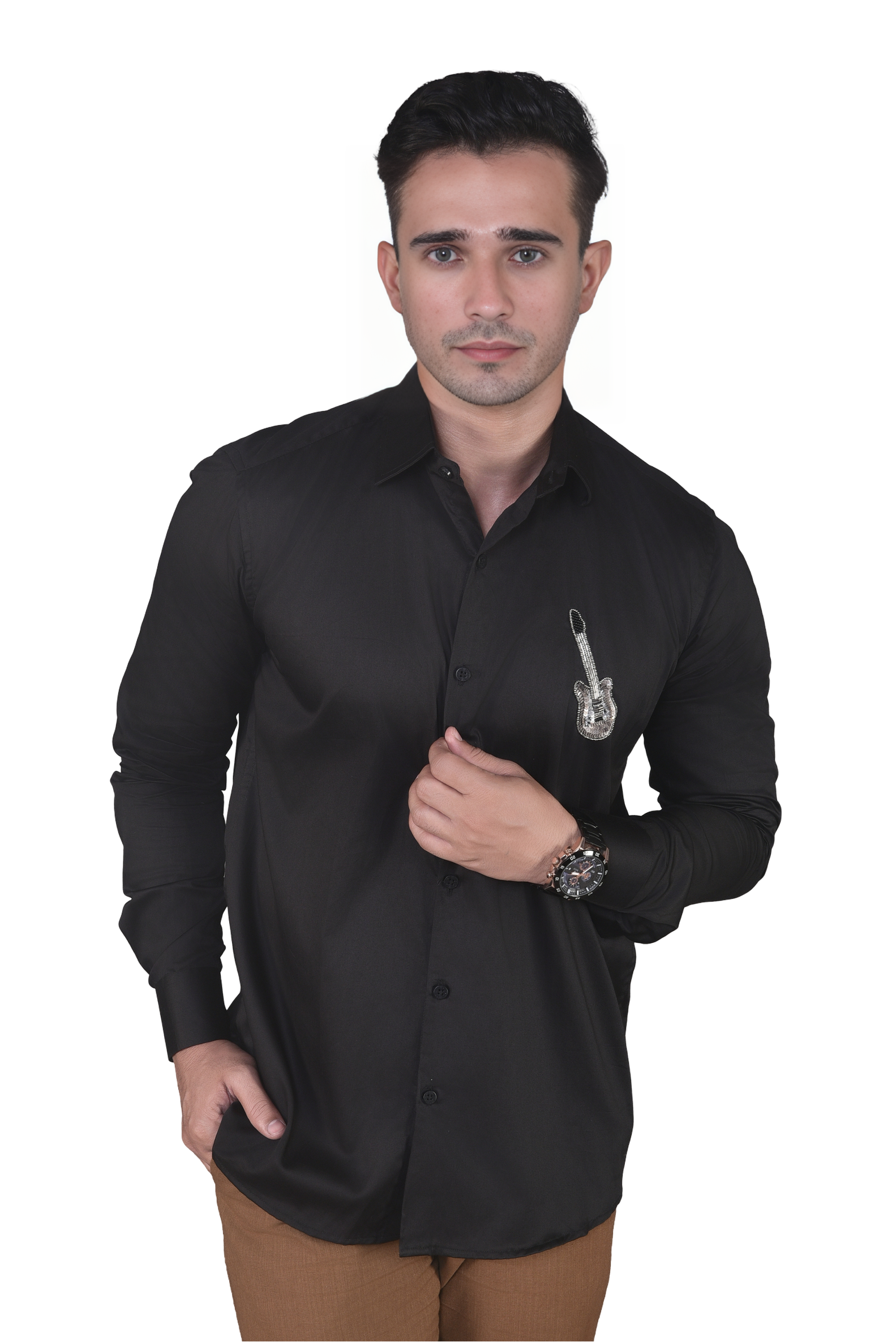 A shirt with guitar embroidery is a fantastic choice for music lovers and adds a creative flair to casual attire. The design can vary from detailed and realistic to simple and understated, often placed on the chest, sleeve, or back. This type of embroidery not only showcases a passion for music but also enhances the shirt's visual interest, making it an excellent option for concerts, casual outings, or just expressing one’s love for the art of music.