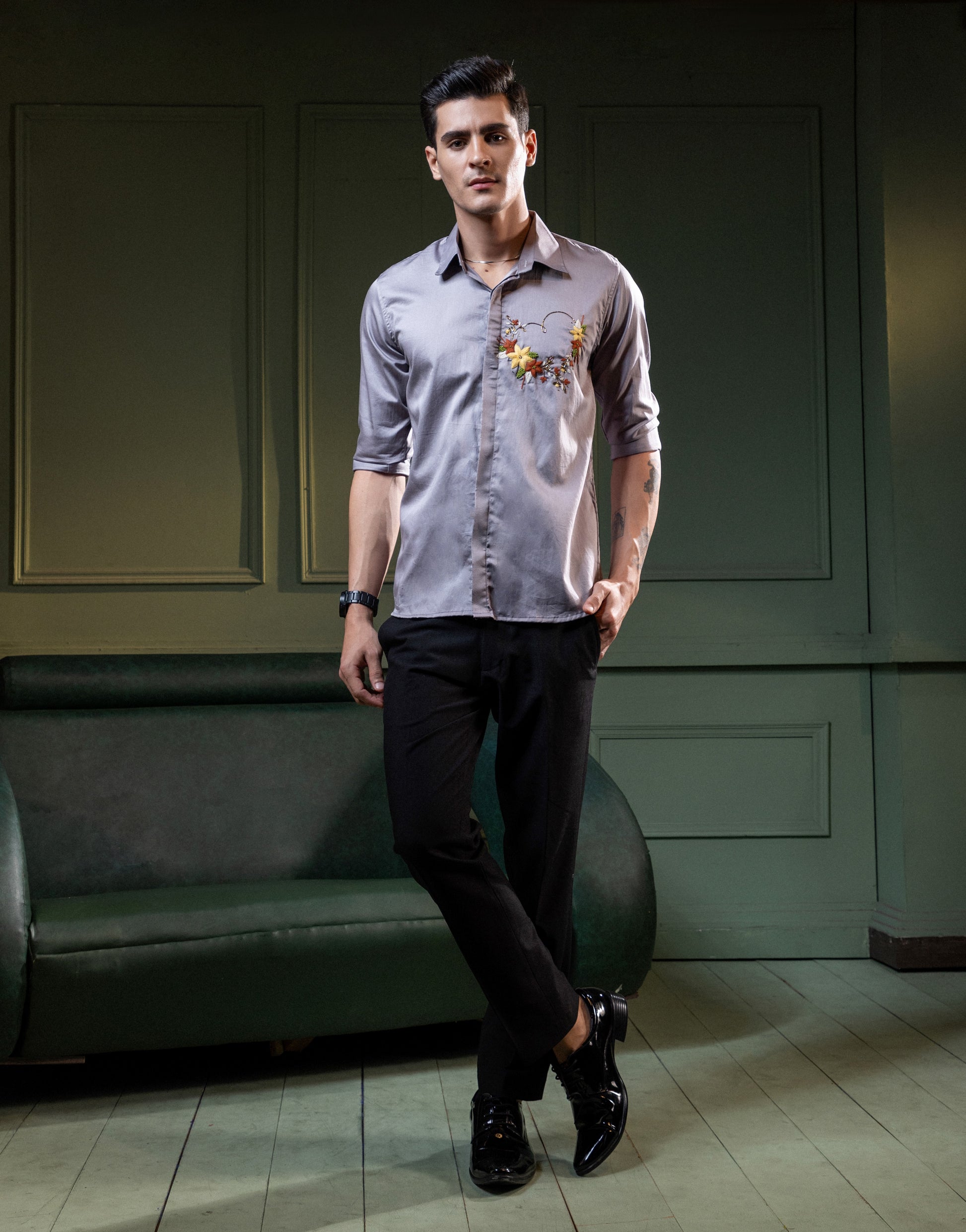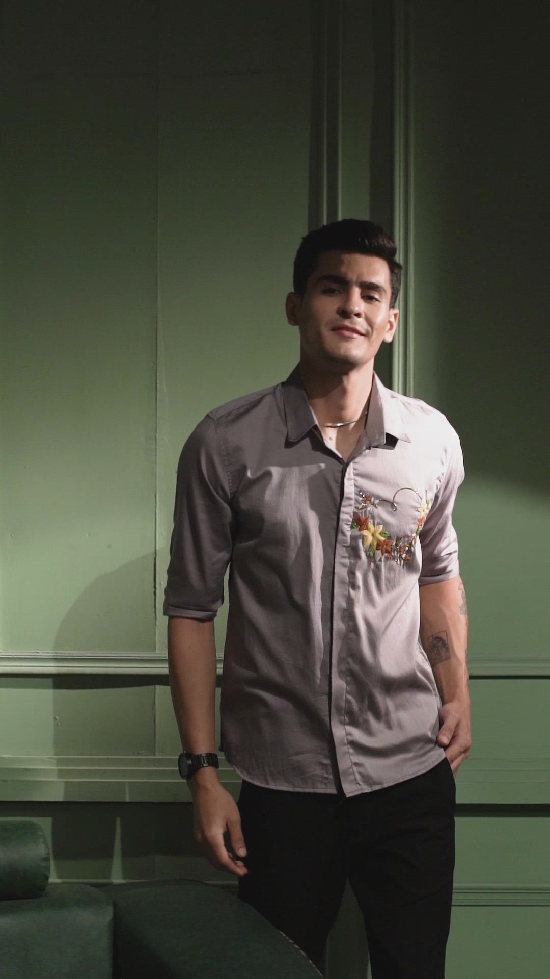 This shirt features a beautifully embroidered design of a heart with flowers, adding a touch of elegance to any outfit. Made with high-quality materials, it is both stylish and comfortable to wear. Perfect for adding a unique and sophisticated touch to your wardrobe.