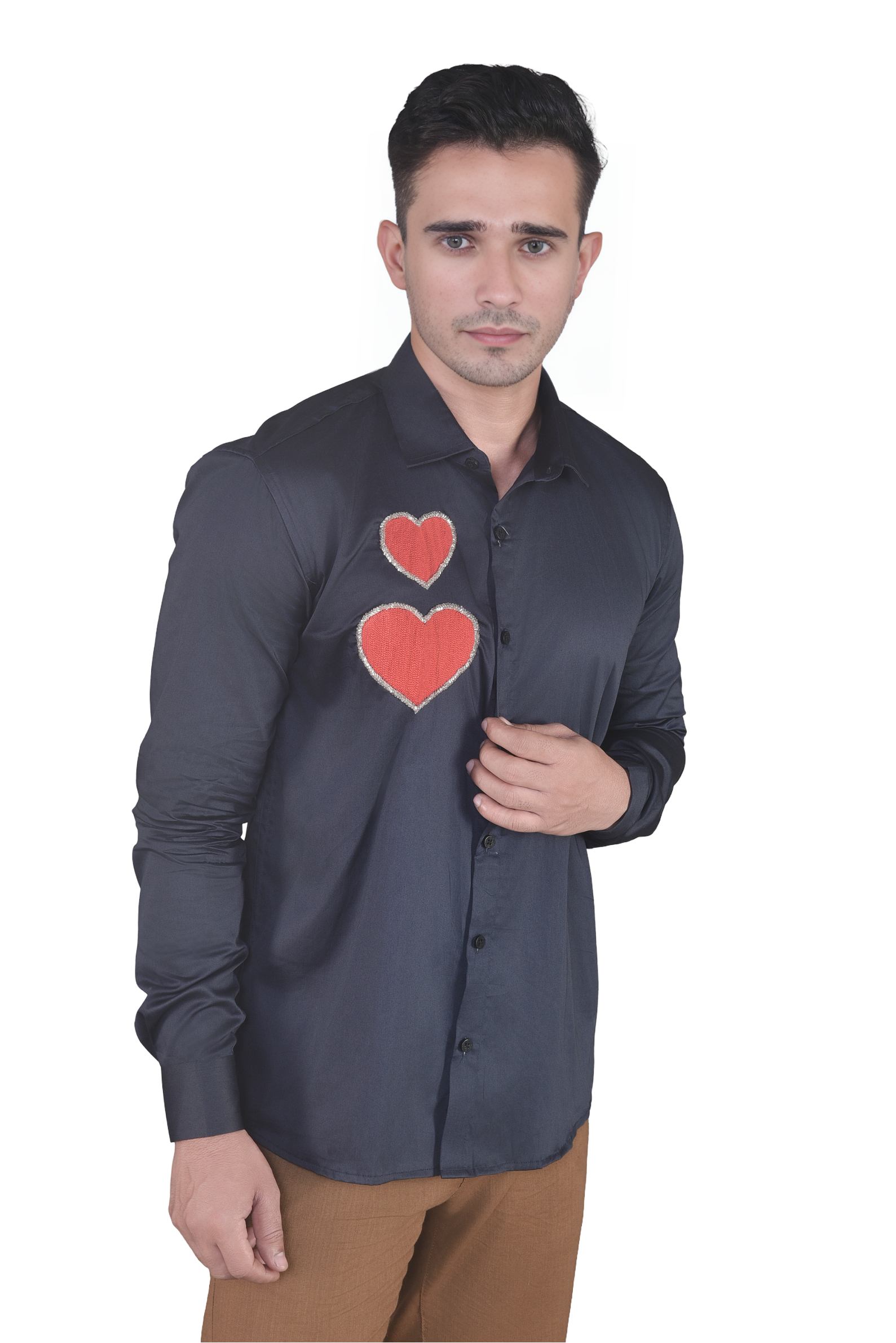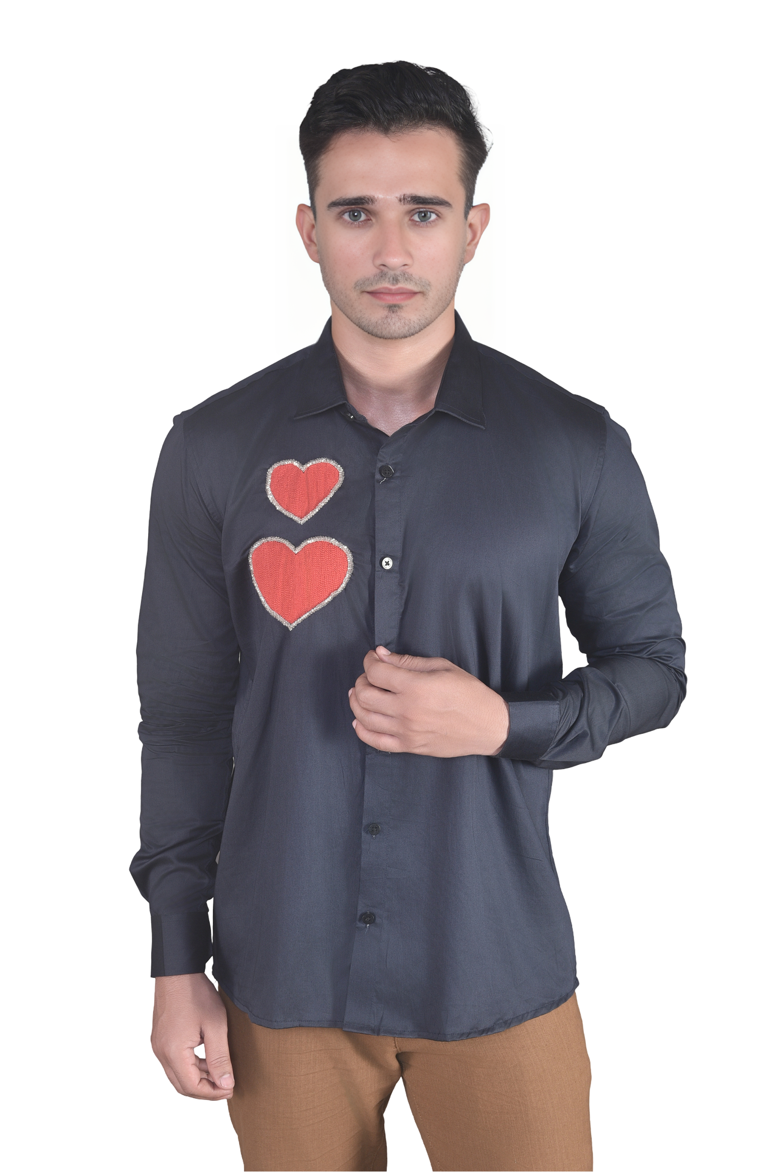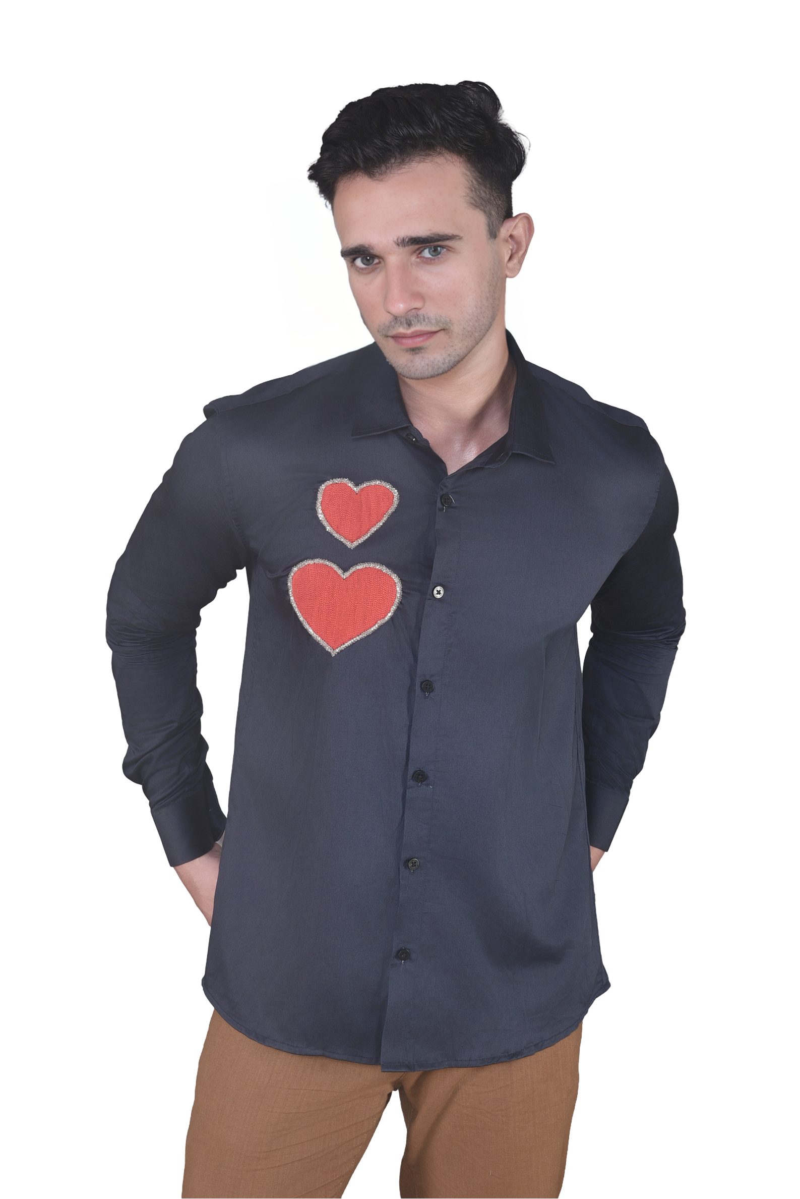 A shirt with hearts embroidered on it exudes a playful and romantic vibe, with the intricate designs adding a personal touch to the fabric. Whether in a scattered pattern or as a focal point, these heart motifs can symbolize love, compassion, and connection, making it a perfect piece for casual outings or special occasions. The vibrant colors and stitching detail bring warmth and charm, allowing the wearer to express their affectionate spirit and unique style effortlessly.