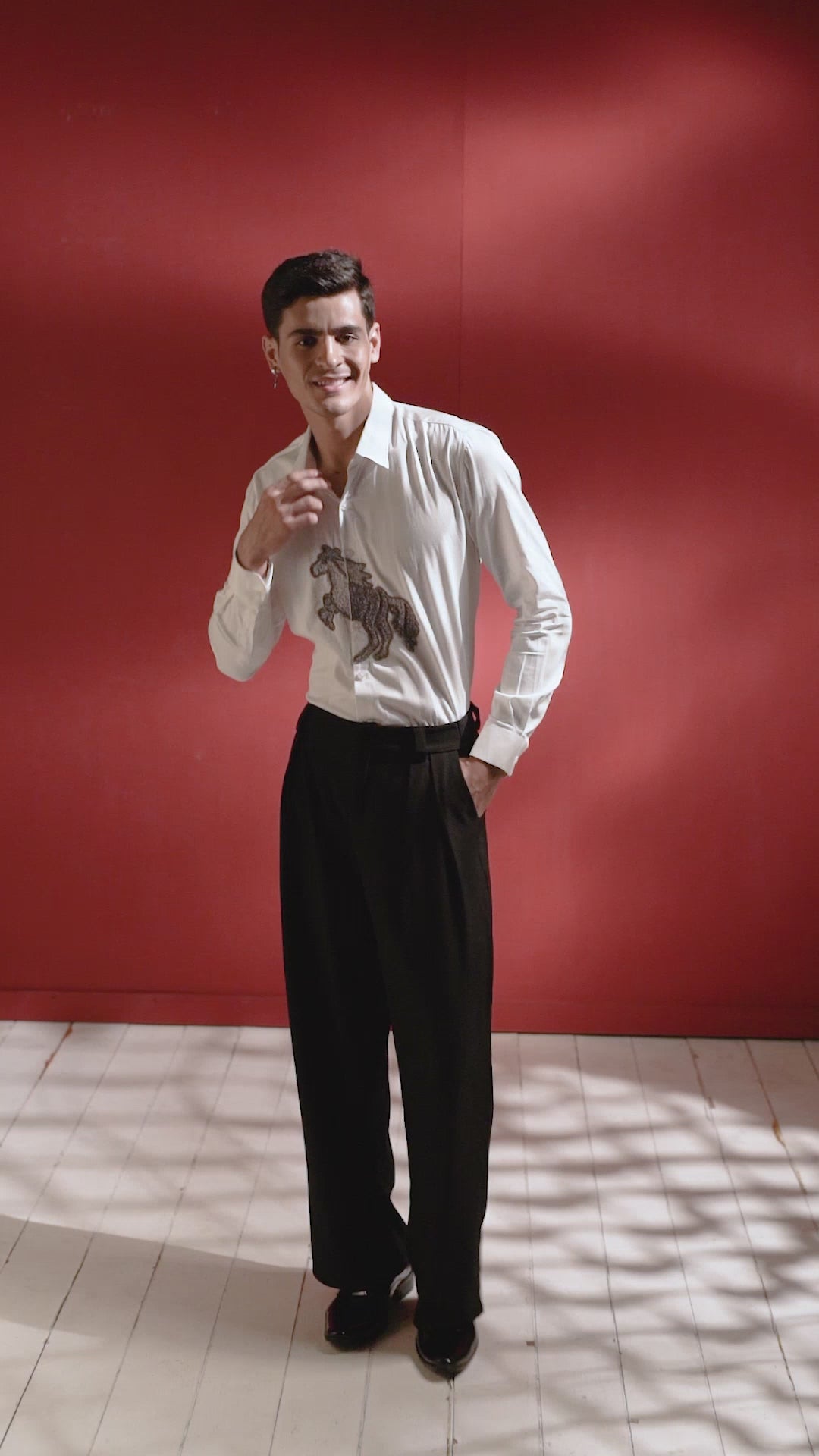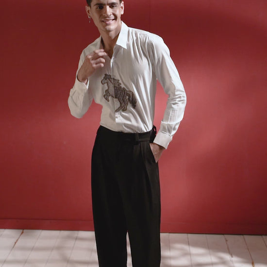 This white shirt features a beautifully embroidered horse, adding a touch of elegance and sophistication to your wardrobe. Crafted with high-quality materials, it offers comfort and durability for everyday wear. Elevate your style with this unique and timeless piece.