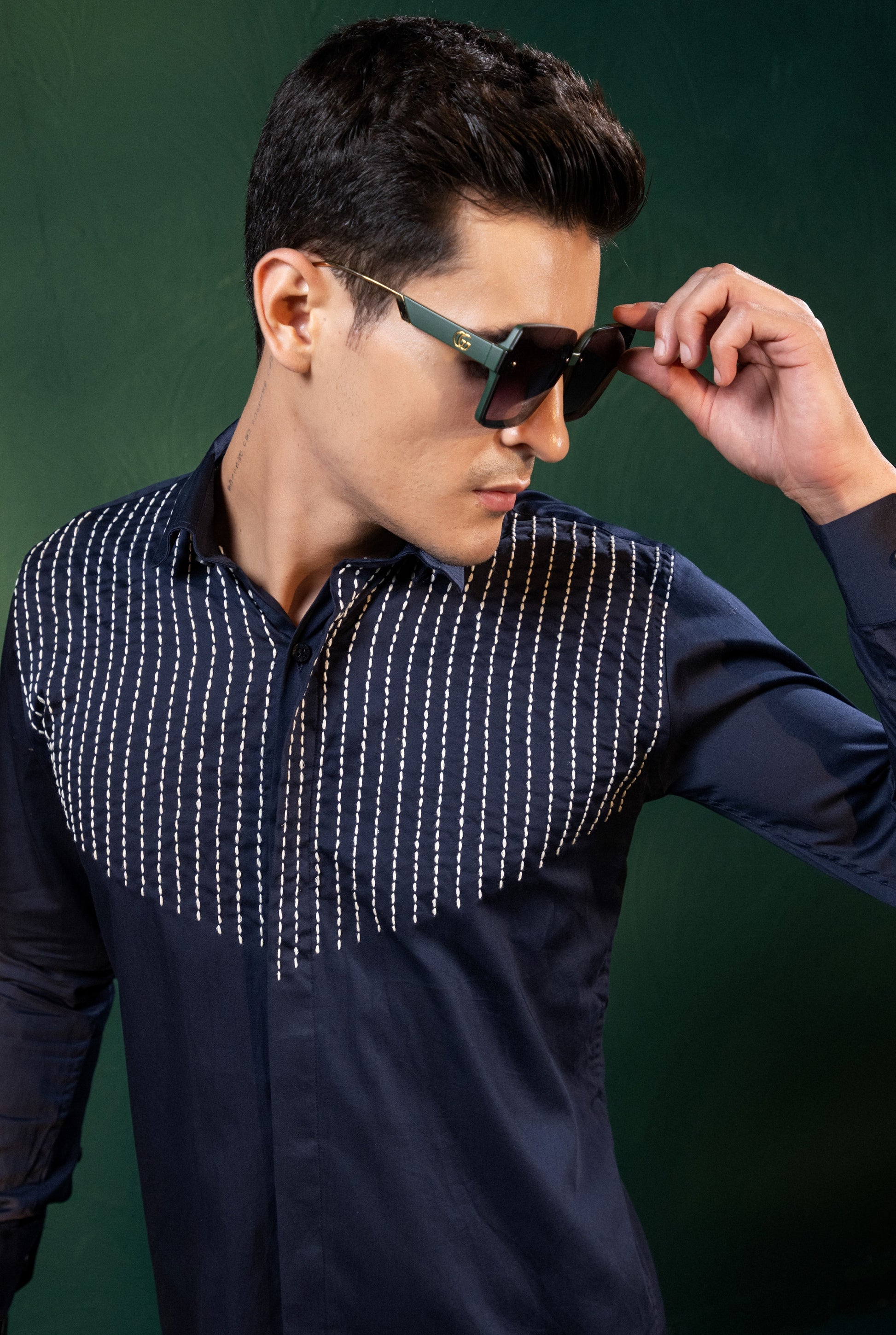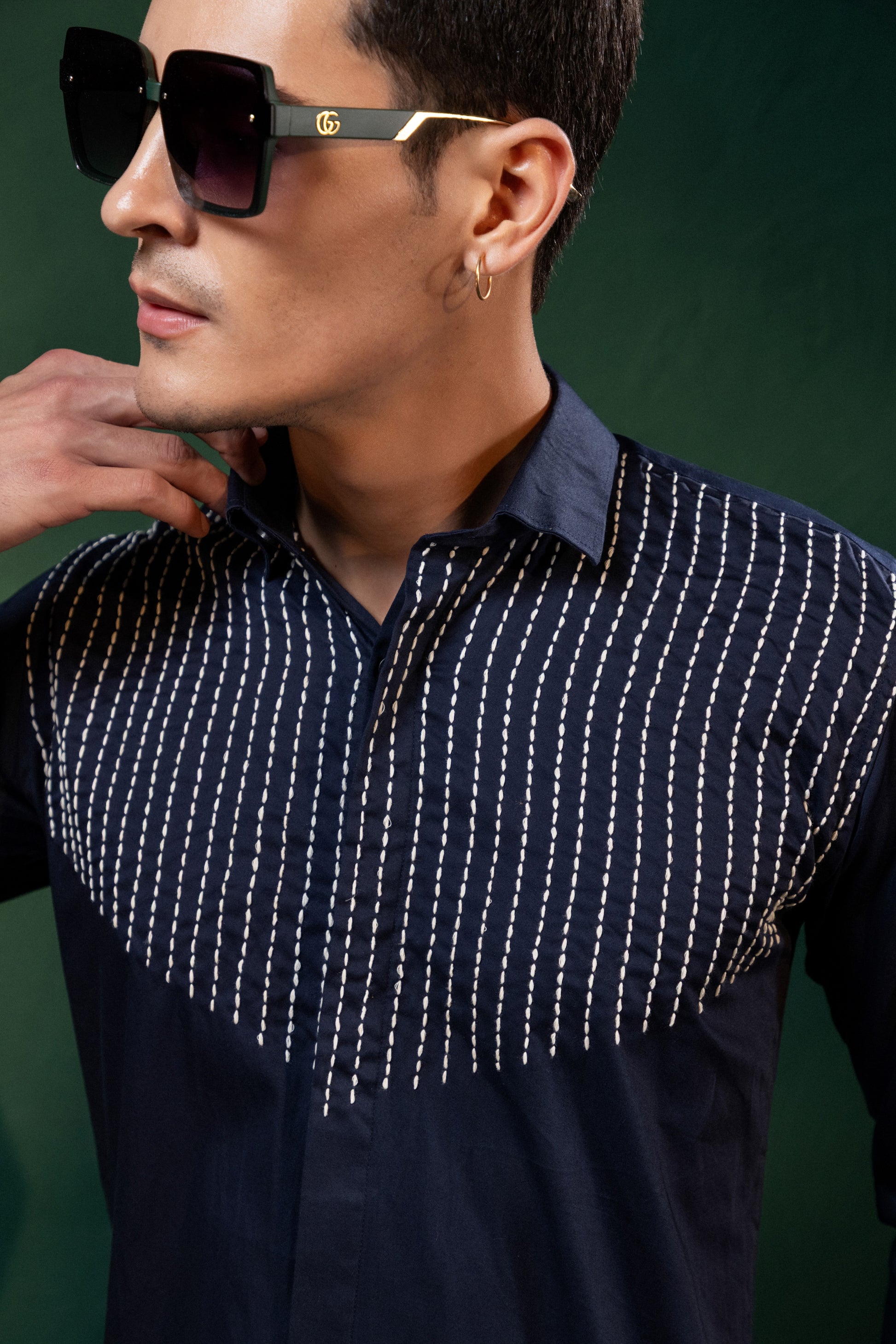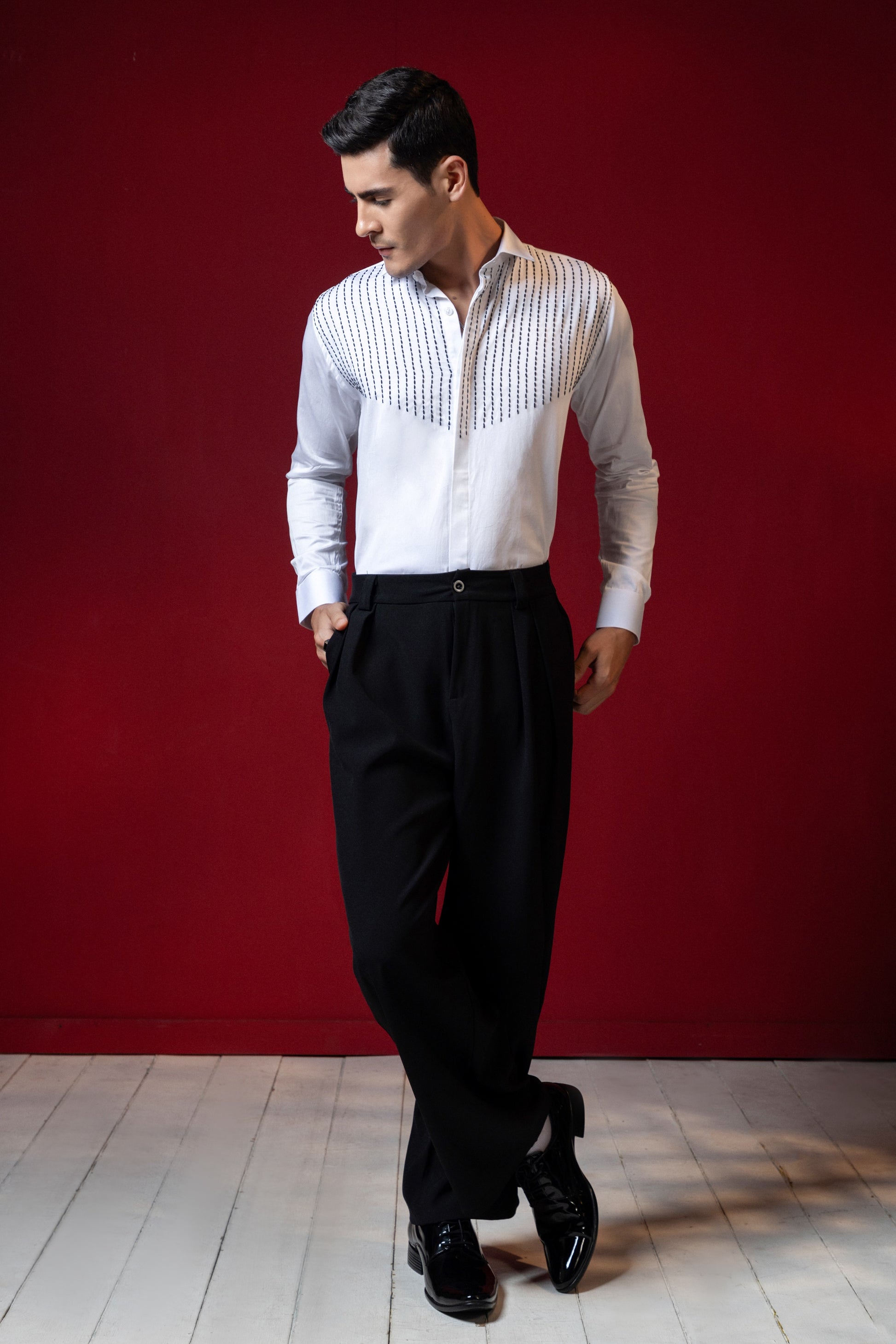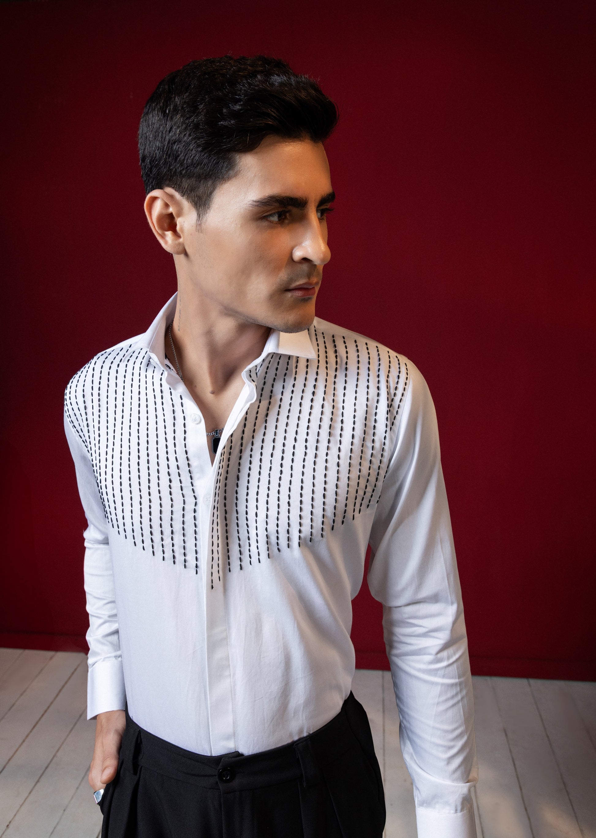 Expertly crafted with precision, each line of thread on this shirt is carefully embroidered to create a unique and stylish design. Elevate your wardrobe with this expertly designed shirt, perfect for any occasion. Experience the quality and elegance of this intricate embroidery, made to stand out in any crowd.