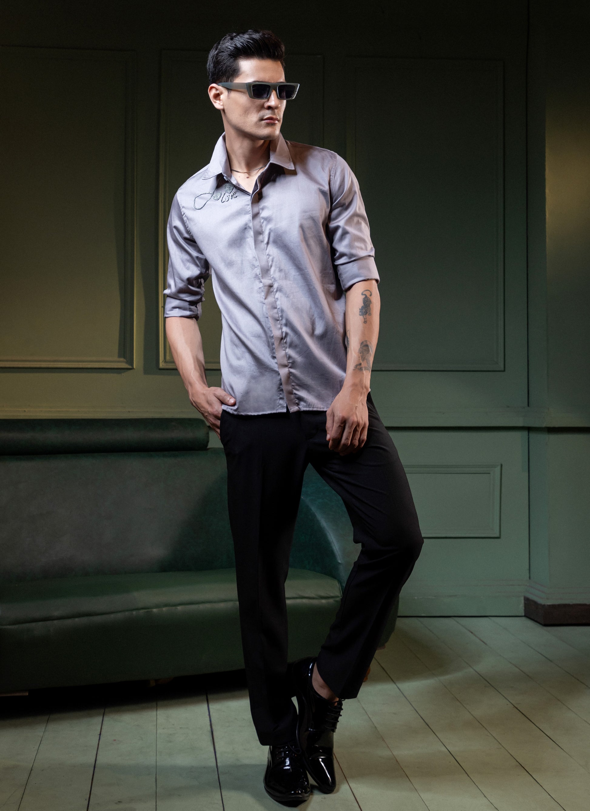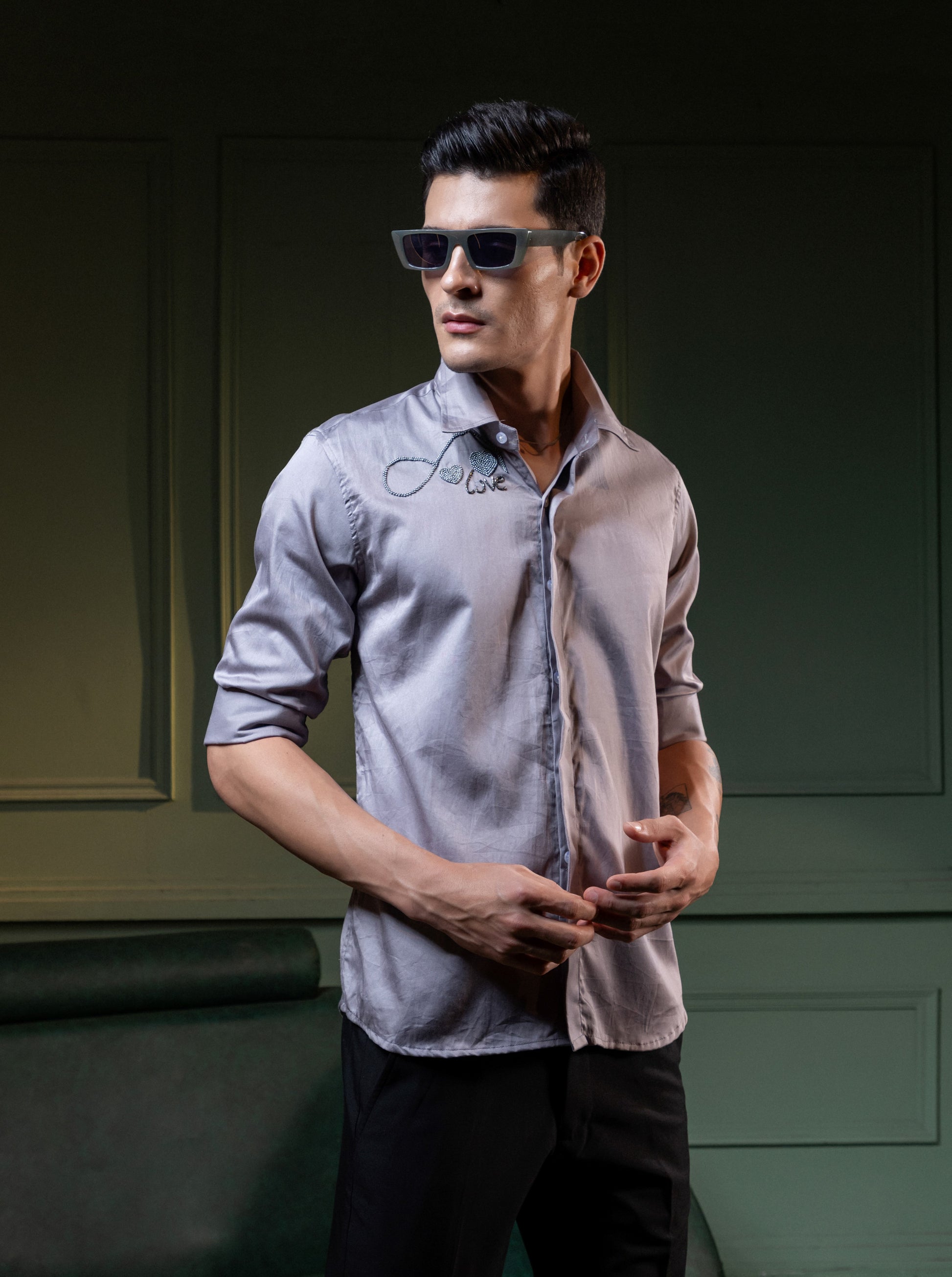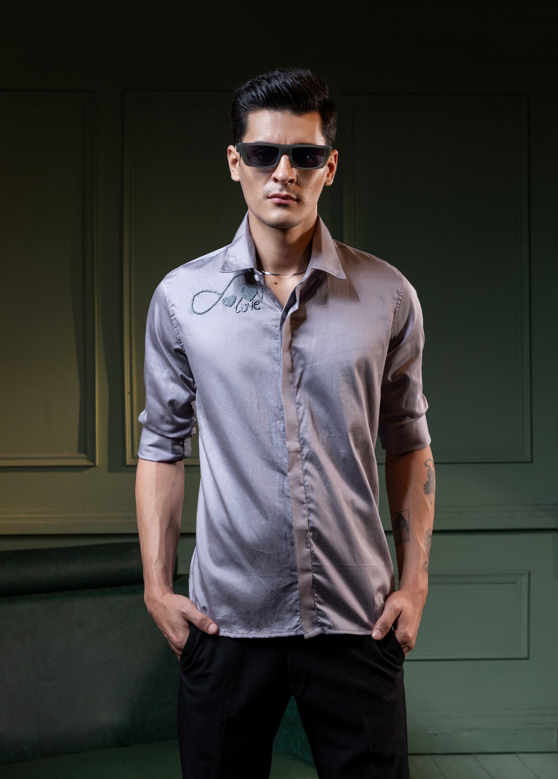 This gray shirt features an elegant LOVE INFINITY embroidery, making it a stylish addition to any wardrobe. The timeless design and comfortable fabric make it suitable for any occasion. Show off your love and fashion sense with this beautiful shirt.