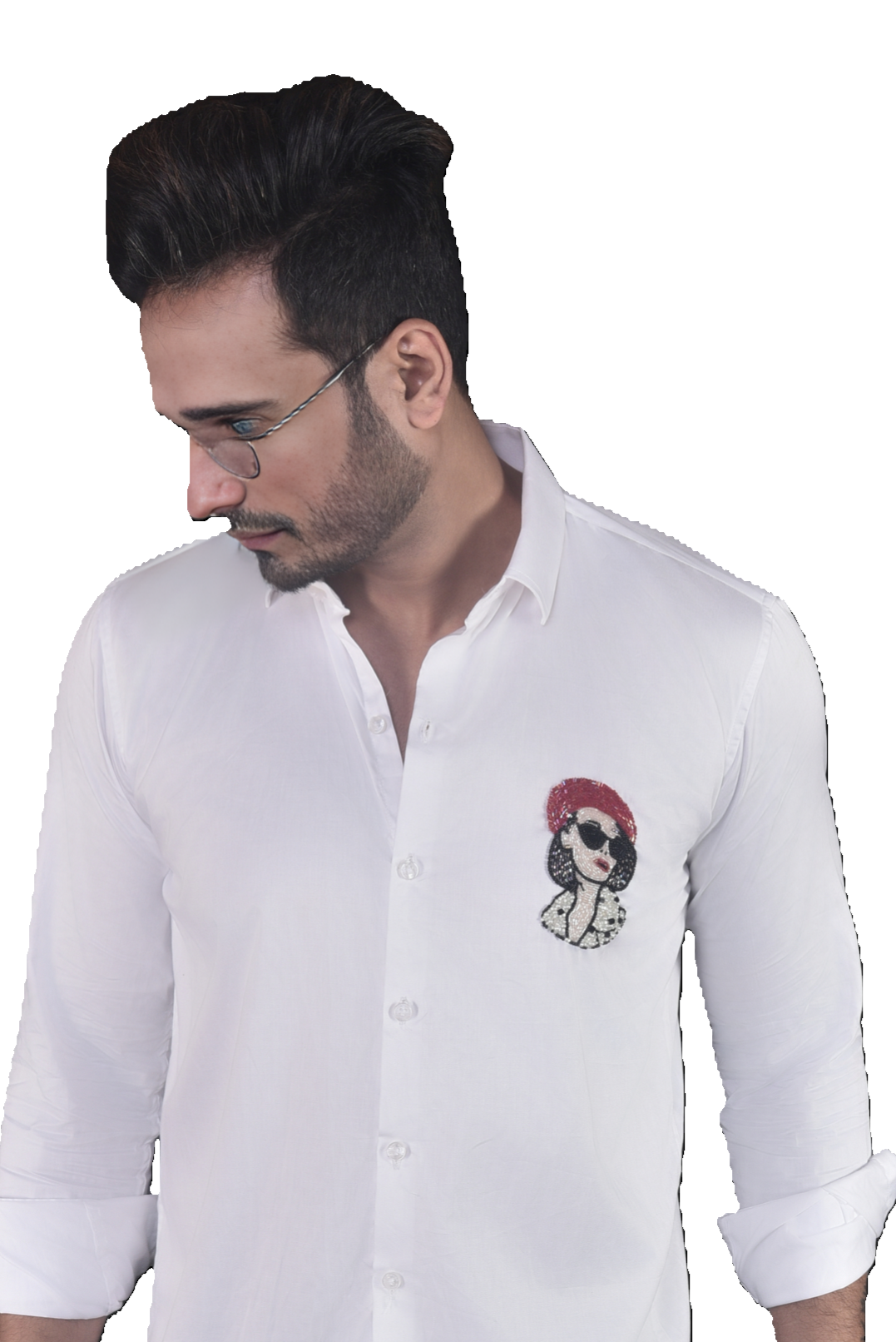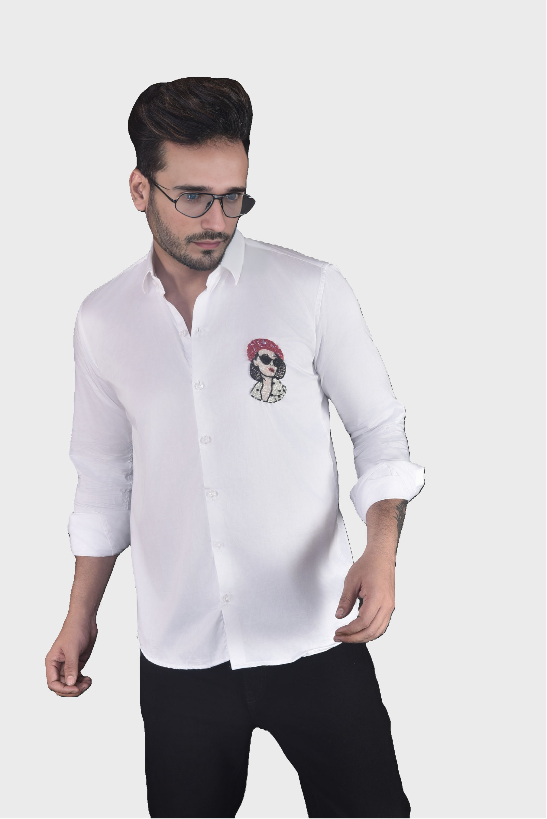 MODERN GIRL SEQUINNED ON A WHITE SHIRT