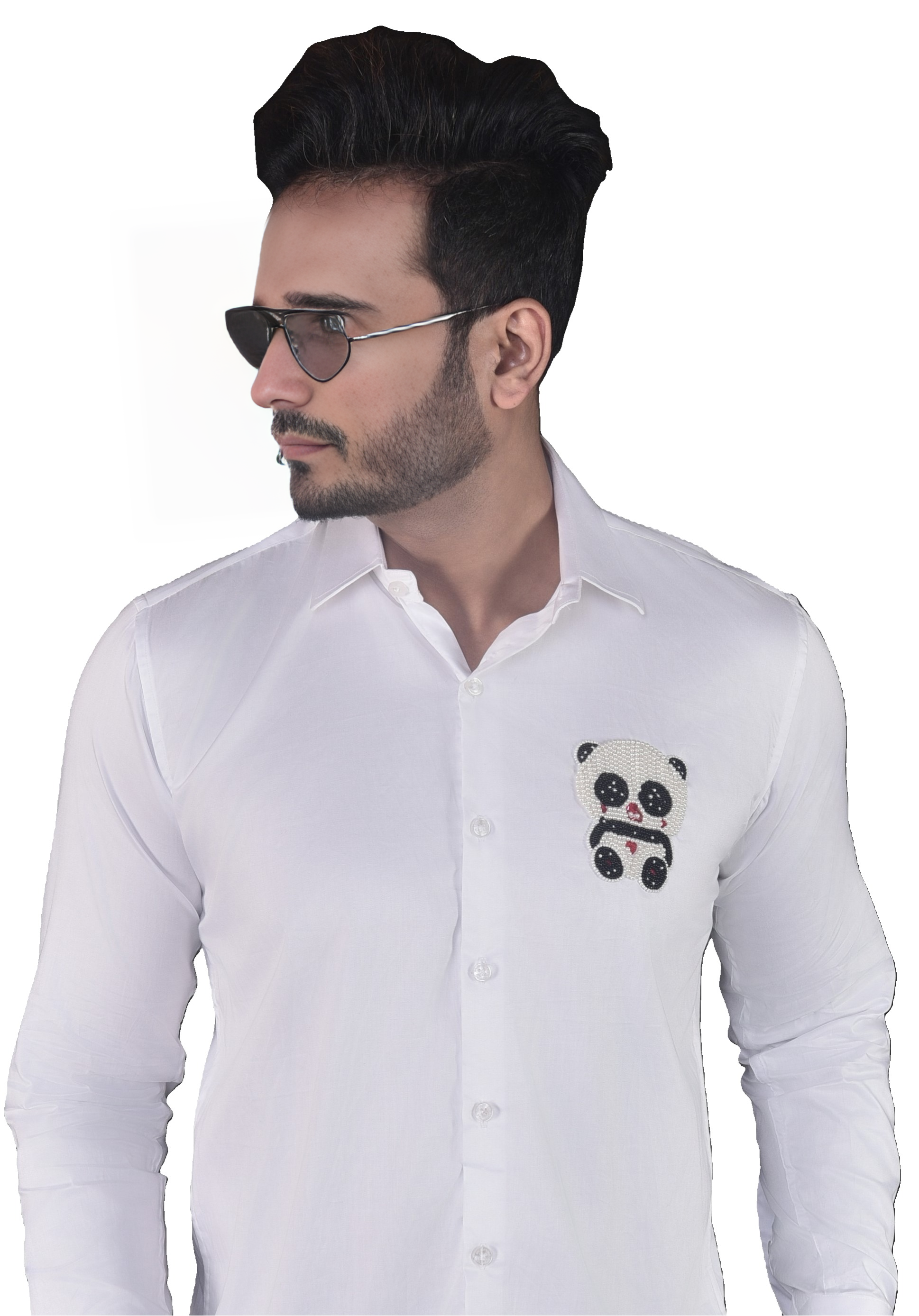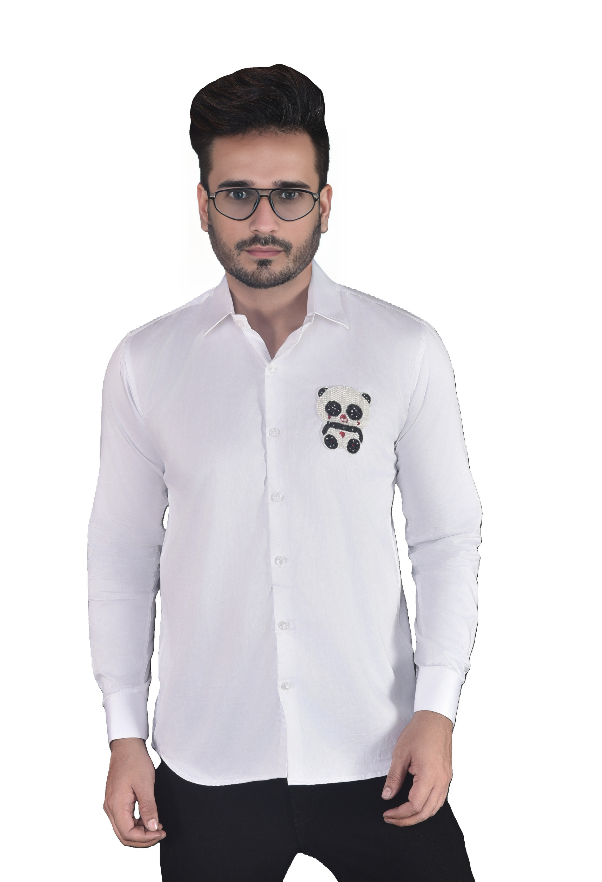 A shirt with a hand-embroidered panda design offers a charming and whimsical touch, perfect for animal lovers and those who appreciate artisanal craftsmanship. The intricate stitching brings the adorable panda to life, showcasing fine details and personal artistry that mass-produced designs often lack. This shirt can add a playful yet stylish vibe to casual outfits, making it a delightful choice for everyday wear or as a thoughtful gift, capturing the spirit of nature and creativity in a unique way.