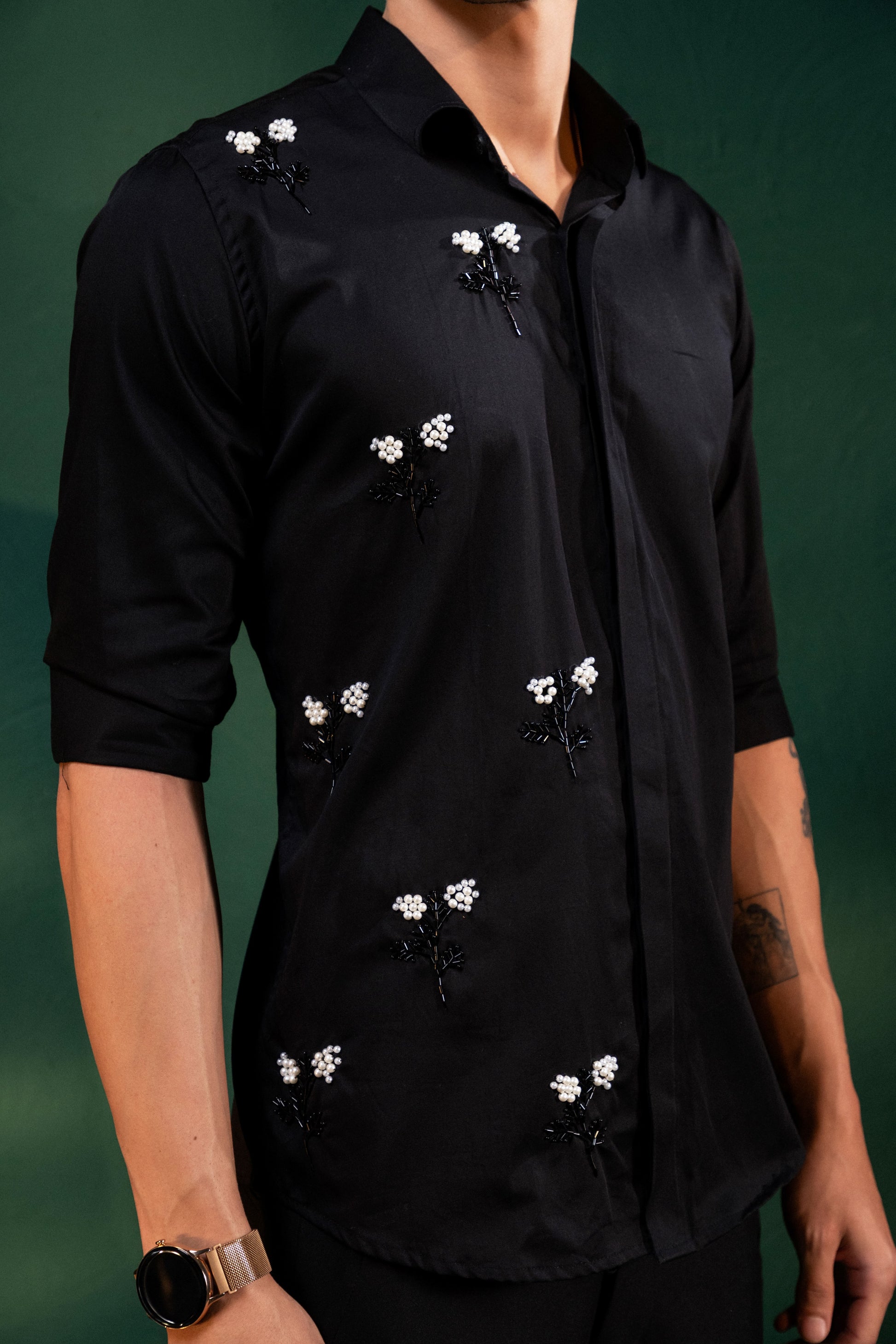 Transform yourself with our PEARL FLOWERS EMBROIDERY. These intricate, professionally embroidered flowers add a touch of sophistication to your look. Elevate your style effortlessly.