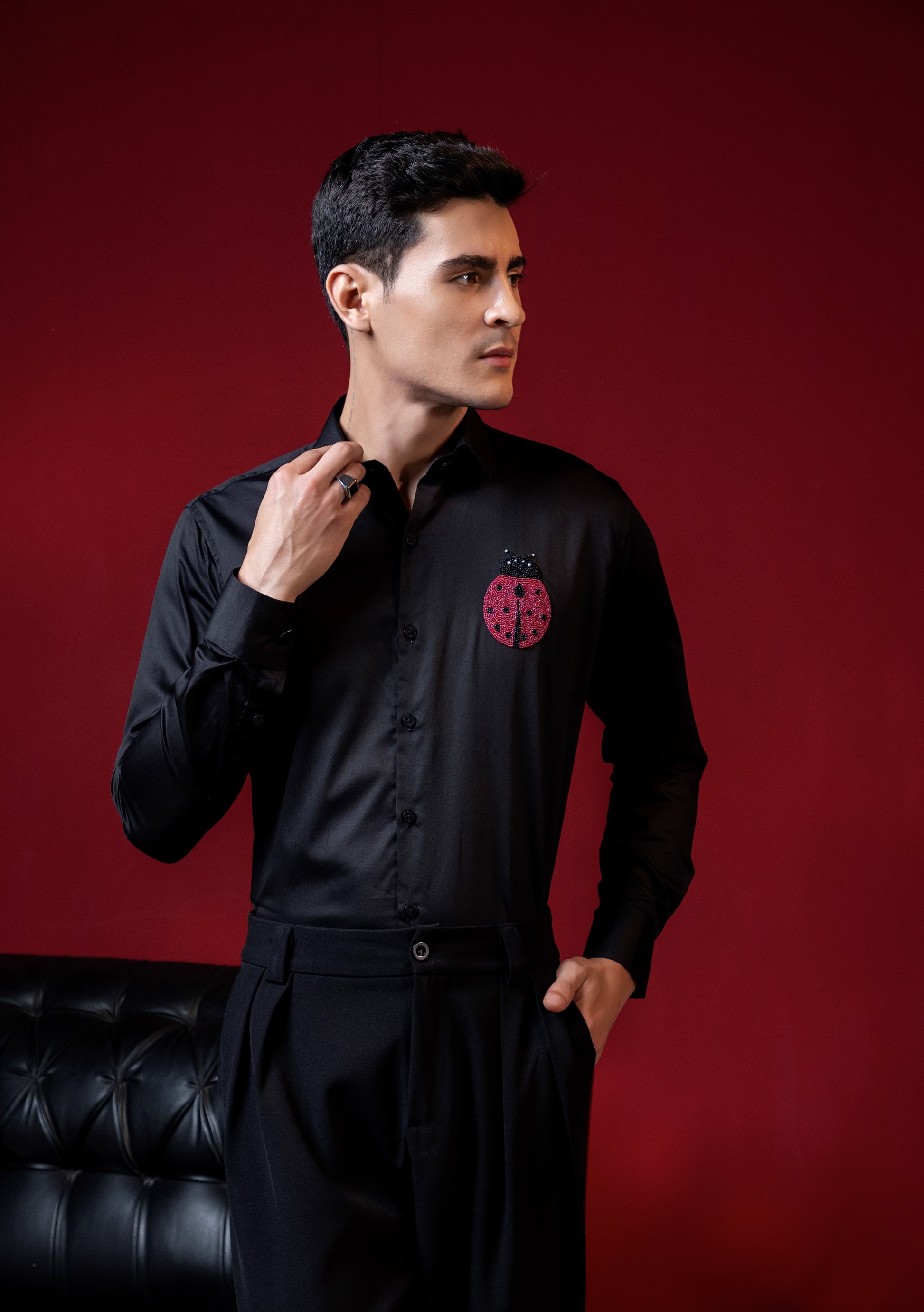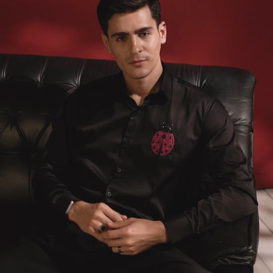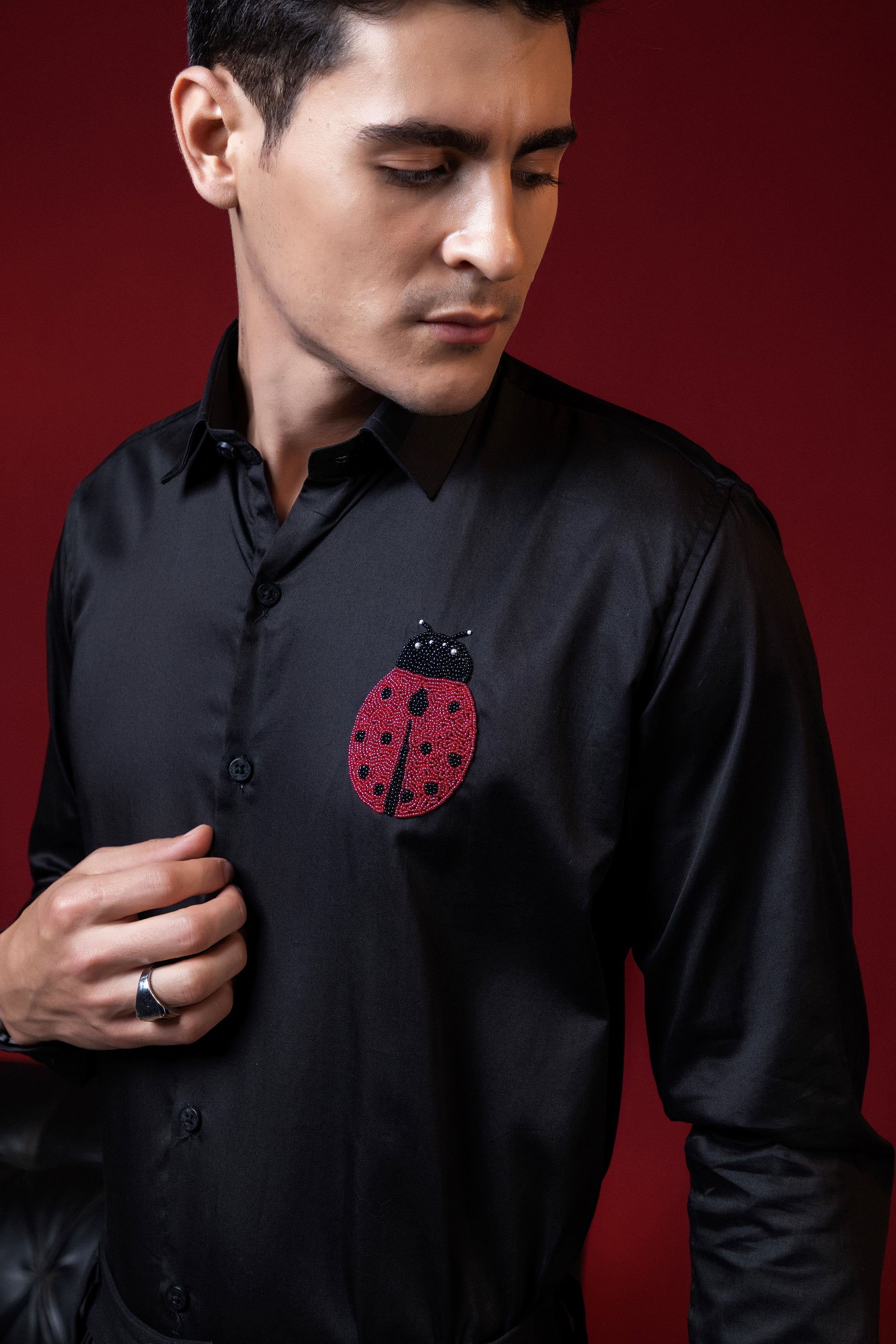 A shirt adorned with a hand-embroidered red bug is a striking and whimsical fashion statement that adds a unique flair to casual wear. The vibrant red color of the bug can symbolize energy and creativity, while the intricate embroidery showcases craftsmanship and attention to detail. This playful design can appeal to nature lovers or those who enjoy quirky, eye-catching pieces, making it a perfect choice for expressing individuality and a love for the outdoors.