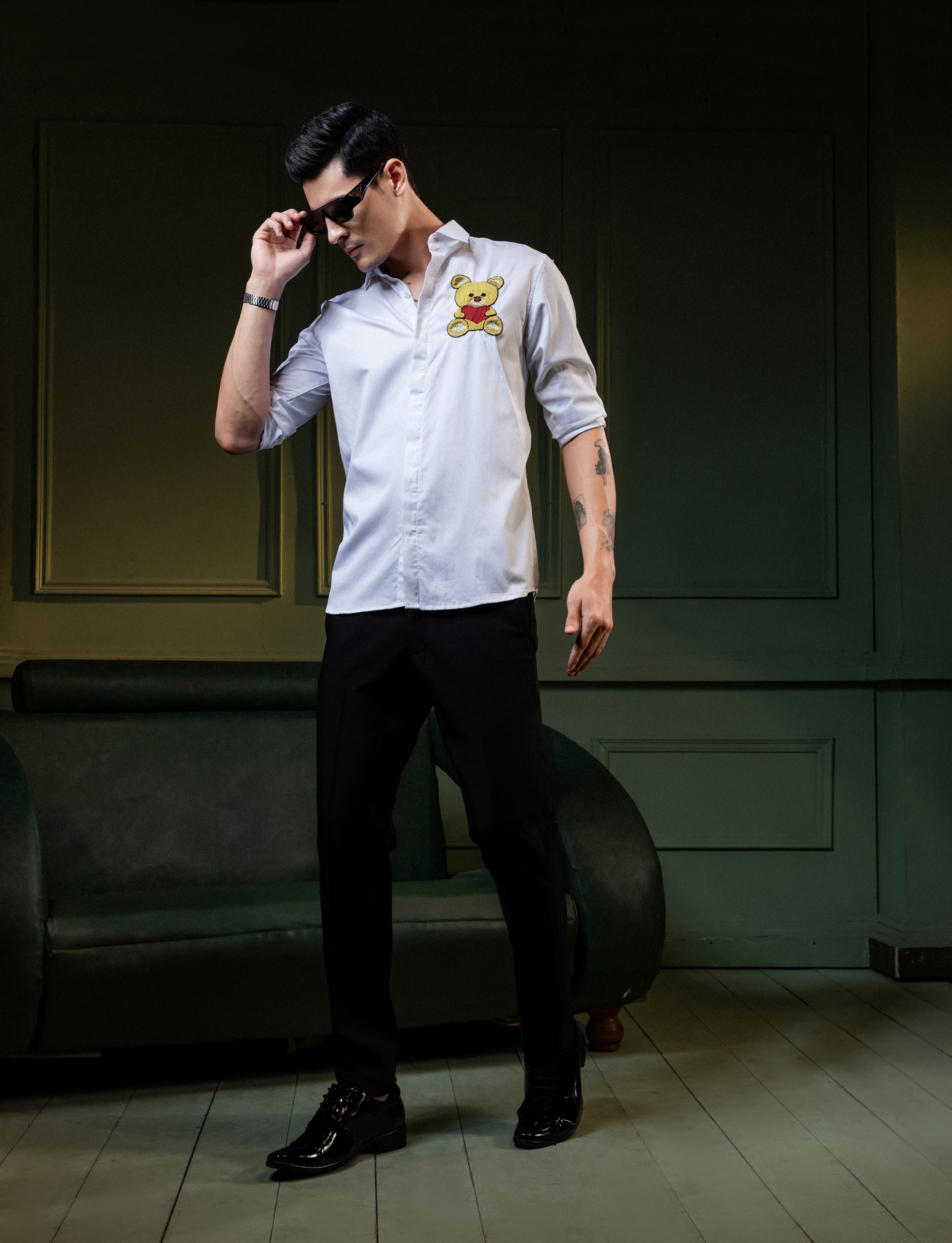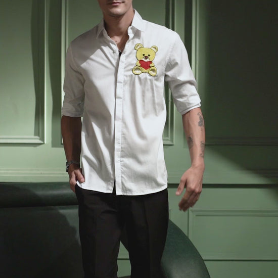Add a touch of cuteness to your child's wardrobe with our Teddy Bear Embroidered White Shirt. Crafted from high-quality fabric, this shirt features an adorable teddy bear embroidery on the front, making it perfect for any occasion. Give your little one the gift of style and comfort with this charming shirt.