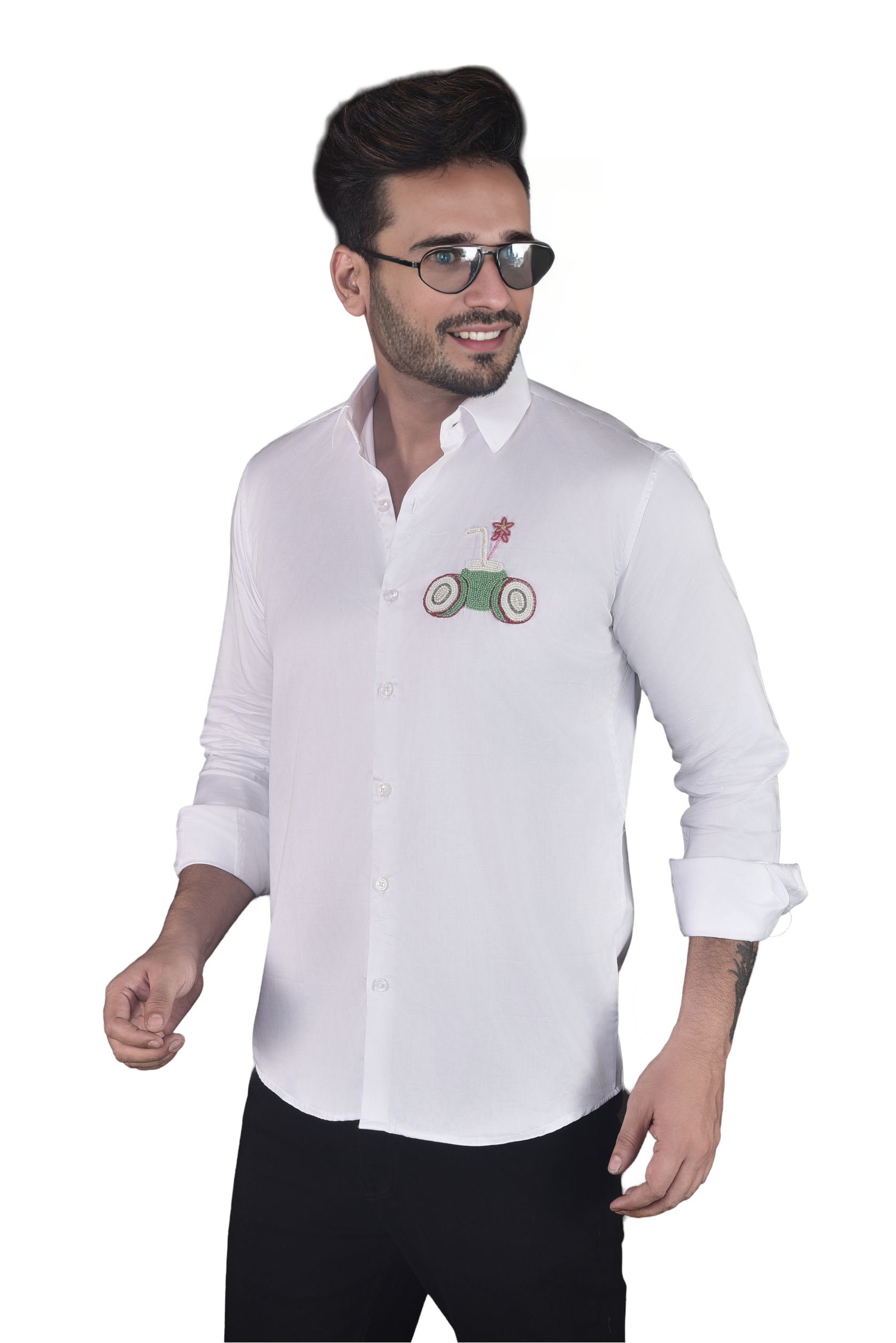 A beach coconut embroidered on a shirt evokes a tropical vibe, perfect for casual outings or summer adventures. The design can feature vibrant colors and intricate detailing to capture the essence of a sunny beach day, making it a stylish choice for those looking to embrace a laid-back lifestyle while showcasing their love for the outdoors.